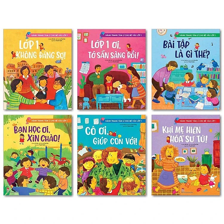 Để chuẩn bị vào lớp 1, ngoài làm quen với tập tô chữ, tập đọc, tập đếm thì việc chuẩn bị tâm lí cho bé cũng hết sức quan trọng. Cuộc sống của học sinh lớp 1 khác hẳn với giai đoạn đi học Mầm non, từ việc tới trường, việc học, làm bài tập, giao tiếp với thầy cô, bạn bè… Bộ sách HÀNH TRANG TÂM LÍ CHO BÉ VÀO LỚP 1 gồm những câu chuyện ngộ nghĩnh xung quanh cô bé đang bước vào lớp 1 sẽ giúp các bé thêm tự tin đến trường. Bộ sách gồm 6 cuốn: Cô ơi, giúp con với! Lớp 1 ơi, tớ sẵn sàng rồi! Khi mẹ hiền “hóa” Sư Tử Lớp 1 không đáng sợ! Bạn học ơi, xin chào! Bài tập là gì thế?