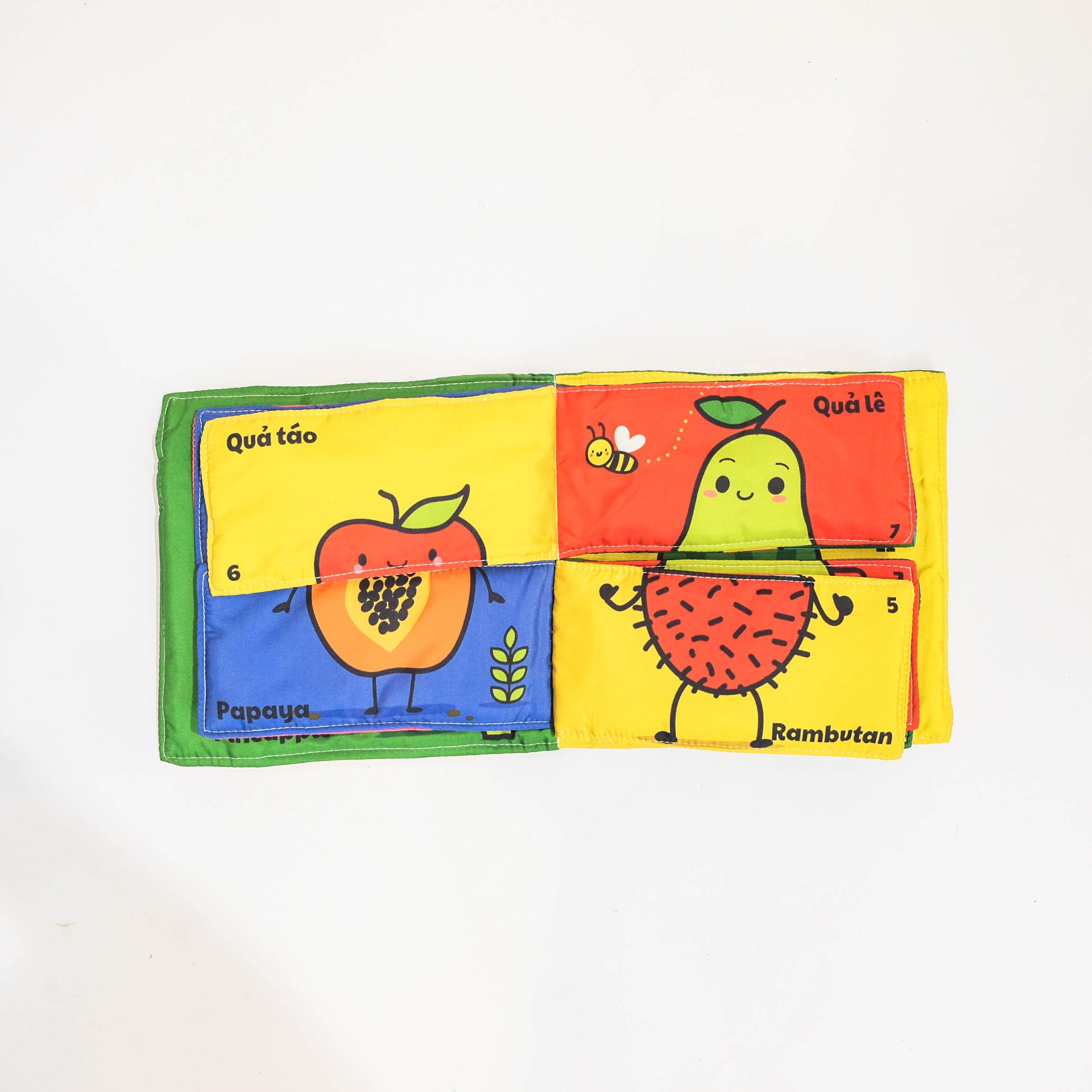 Bộ Sách Lắp Ghép Kích Thích Tư Duy Logic Đầu Tiên Cho Bé: Các Loại Quả (Sách Vải - Song Ngữ) (Dành Cho Bé Từ 0 Tuổi)