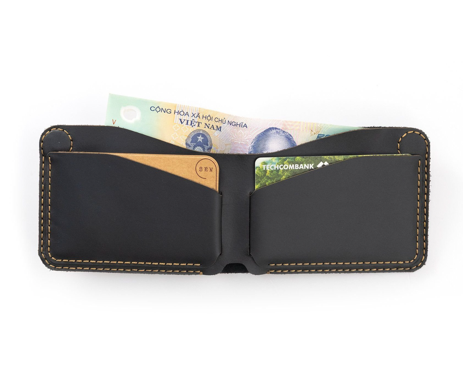 Ví SEN 4: Thế hệ mới nhất của dòng ví SEN. Ngăn chứa: 4 ngăn thẻ + 1 ngăn tiền thẳng (có thể để lên đến 8 thẻ, 20 tờ tiền). Cải tiến: 2 nút nam châm góc, giữ thẻ và tiền an toàn tuyệt đối, thao tác nhanh chóng.