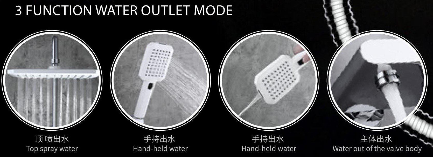 - Sản phẩm gồm 3 vòi: 3 chế độ tắm, riêng vòi tắm nghiêng có 3 chế độ phun nước: Hỗn hợp, Massage, và bình thường.