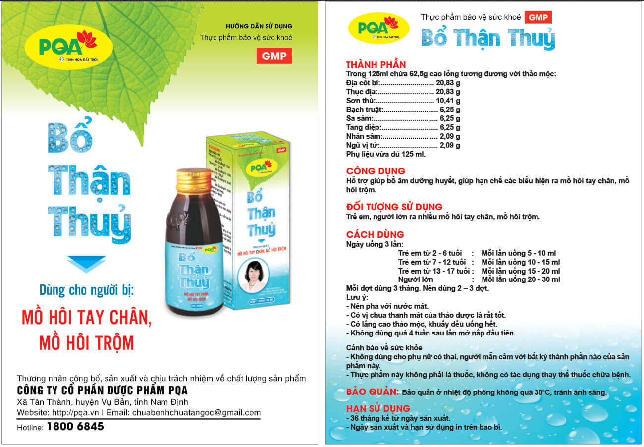 Bổ Thận Thủy PQA Hỗ Trợ Bổ Âm Dưỡng Huyết, Hạn Chế Tiết Mồ Hôi Tay Chân, Mồ Hôi Trộm Hộp 125ml THÔNG TIN SẢN PHẨM: