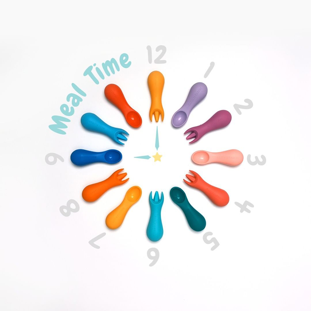 Màu sắc không chỉ đóng vai trò quan trọng trong thẩm mỹ mà còn có ảnh hưởng tích cực đến cảm xúc, nhận thức, tăng cường khả năng học tập, khả năng quan sát, kích thích sự sáng tạo của trẻ. Bộ thìa nĩa ăn tập ăn silicon Palm Grasp Marcus & Marcus được thiết kế với 6 màu sắc cơ bản, sinh động, bắt mắt cho bé lựa chọn (vàng, đỏ bordeau, xanh lá, xanh dương, hồng, tím), bé sẽ cảm thấy cuốn hút và muốn tìm hiểu khám phá.
