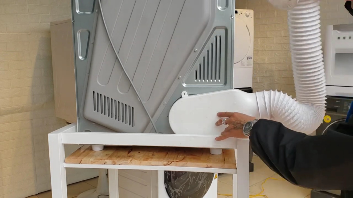 - Cửa số thoát hơi Máy sấy quần áo thông hơi tạo ra chuyển động quay của lồng sấy, lấy không khí từ bên ngoài vào, làm nóng, sau đó tạo dòng xoáy trong lồng lấy đi nước trong quần áo và bốc hơi thành 1 hỗn hợp không khí nóng ẩm đưa ra ngoài bằng đường ống thải. Bộ thông hơi máy sấy giúp đưa không khí nóng ẩm thoát ra ngoài.