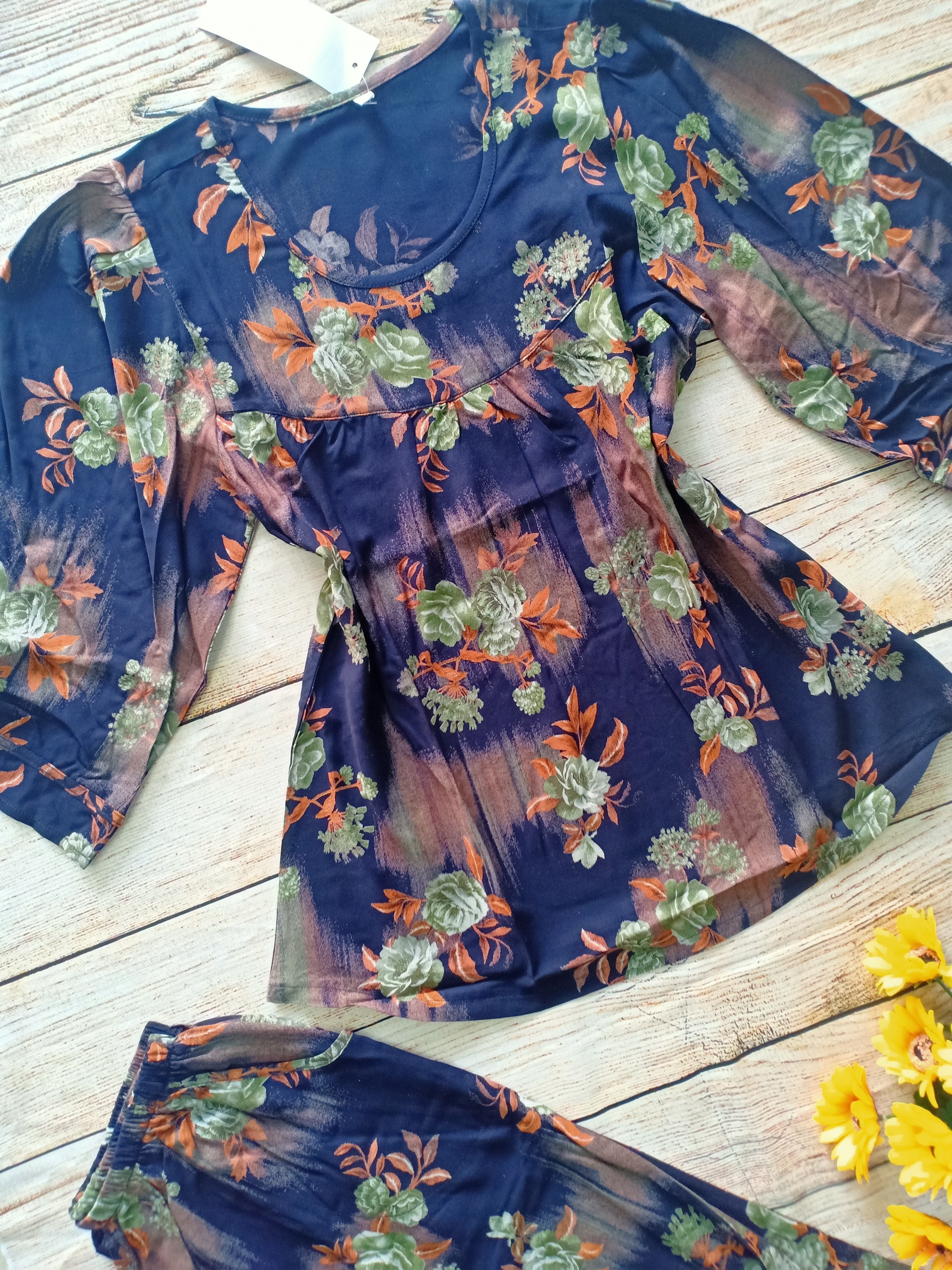 Bộ đồ trung niên pyjama họa tiết tay dài Chất liệu lụa mịn Kích thước 43-60kg