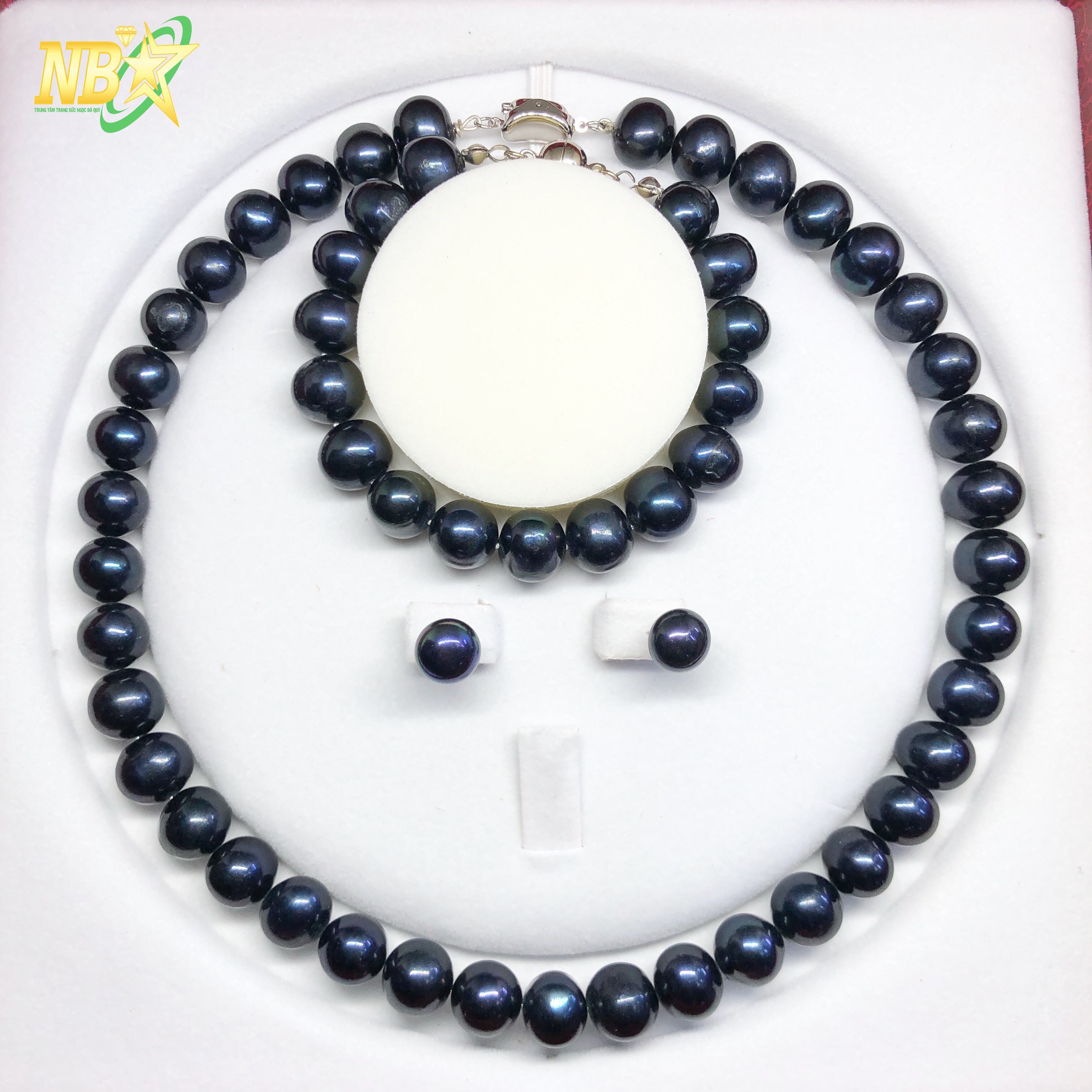 ✨Bộ Vòng Cổ - Vòng Tay Ngọc Trao Đen Cao Cấp - 4A-BNTD010