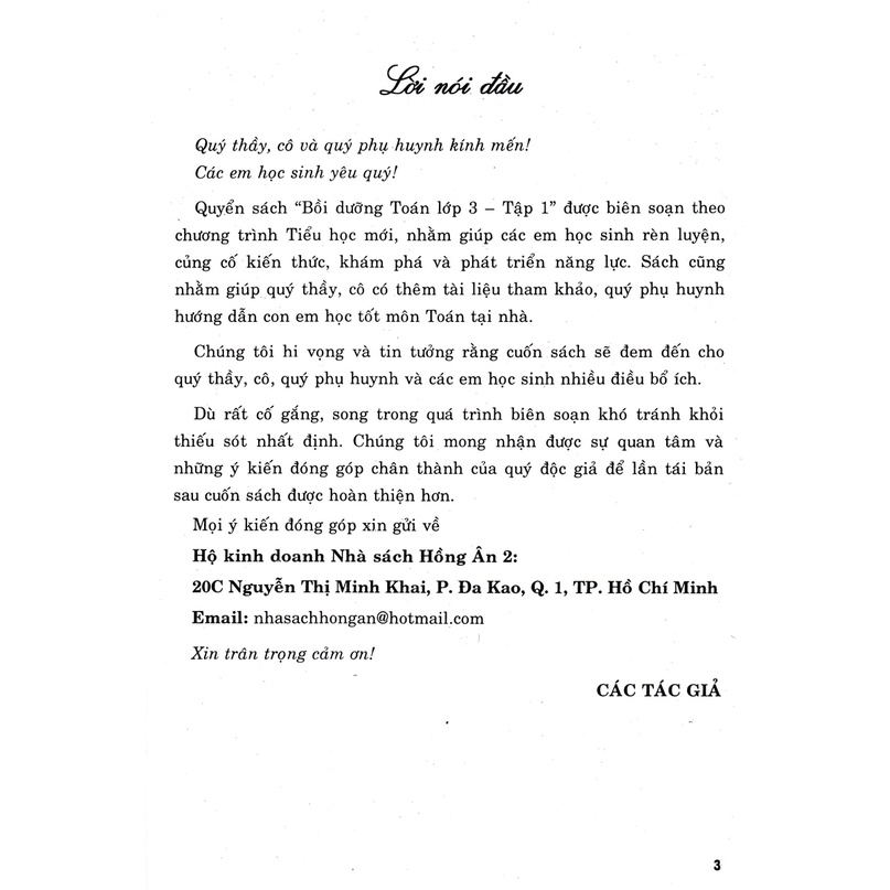 Chúng tôi hi vọng và tin tưởng rằng cuốn sách sẽ đem đến cho quý thầy, cô, quý phụ huynh và các em học sinh nhiều điều bổ ích. Dù rất cố gắng, song trong quá trình biên soạn khó tránh khỏi thiếu sót nhất định. Chúng tôi mong nhận được sự quan tâm và những ý kiến đóng góp chân thành của quý độc giả để lần tái bản sau cuốn sách được hoàn thiện hơn.
