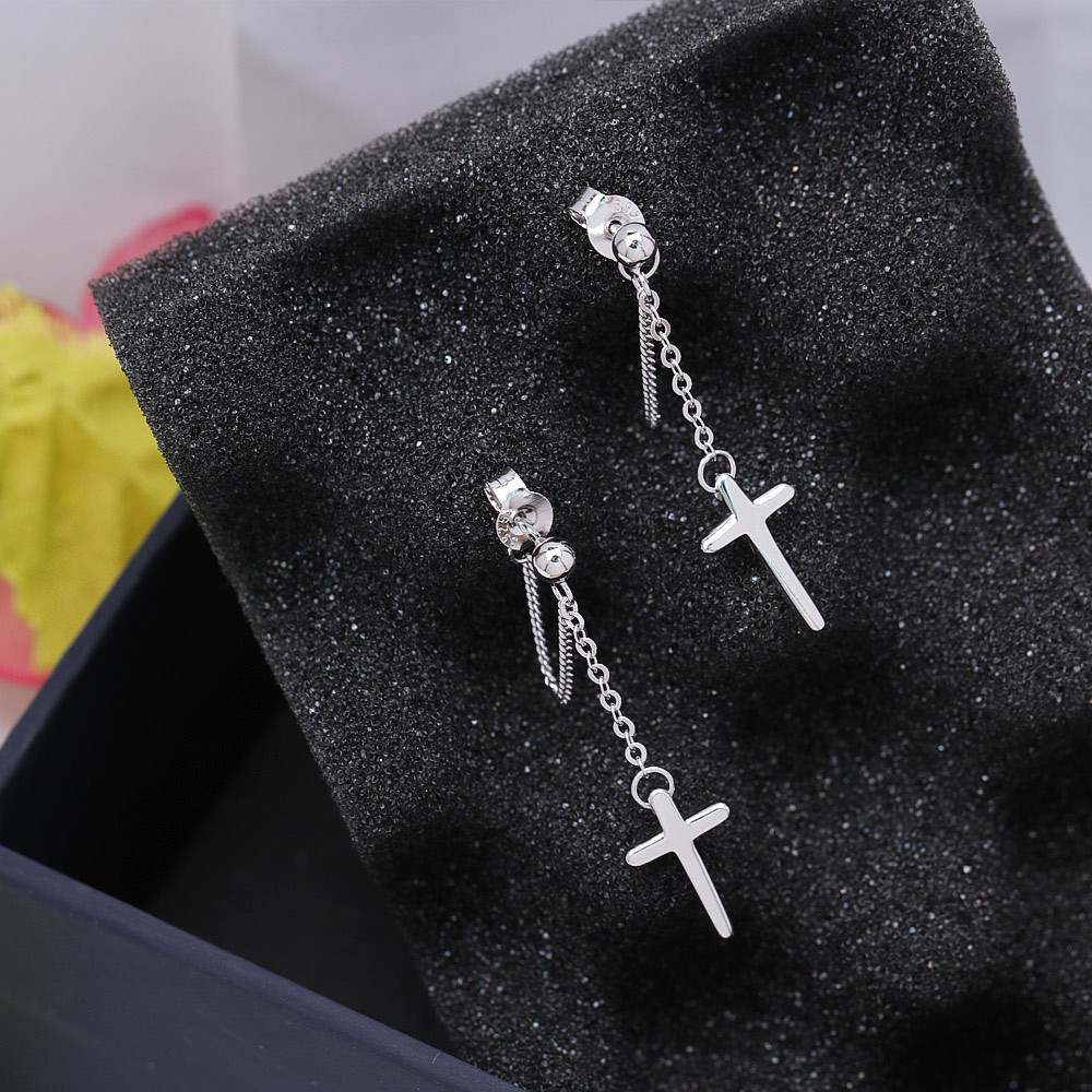 ✨Bông tai lỗ đinh gấp dây chuyền thả chữ thập độc lạ hot hit