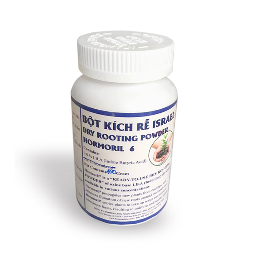• Bột Kích Rễ Israel Rooting Power Hormoril 6 đặc biệt dành riêng cho hoa hồng thuộc họ thân gỗ. Với thành phần Thiabendazole + Indole Butyric Acid giúp vết cắt cây “liền lại nhanh chóng”, không bị thối và đen đầu. Đồng thời, Thúc đẩy hình thành rễ thân, rễ nhánh, rễ lá , bởi vậy có thể dùng để thúc đẩy sự mọc rễ của hạt giống, ươm giống sinh rễ