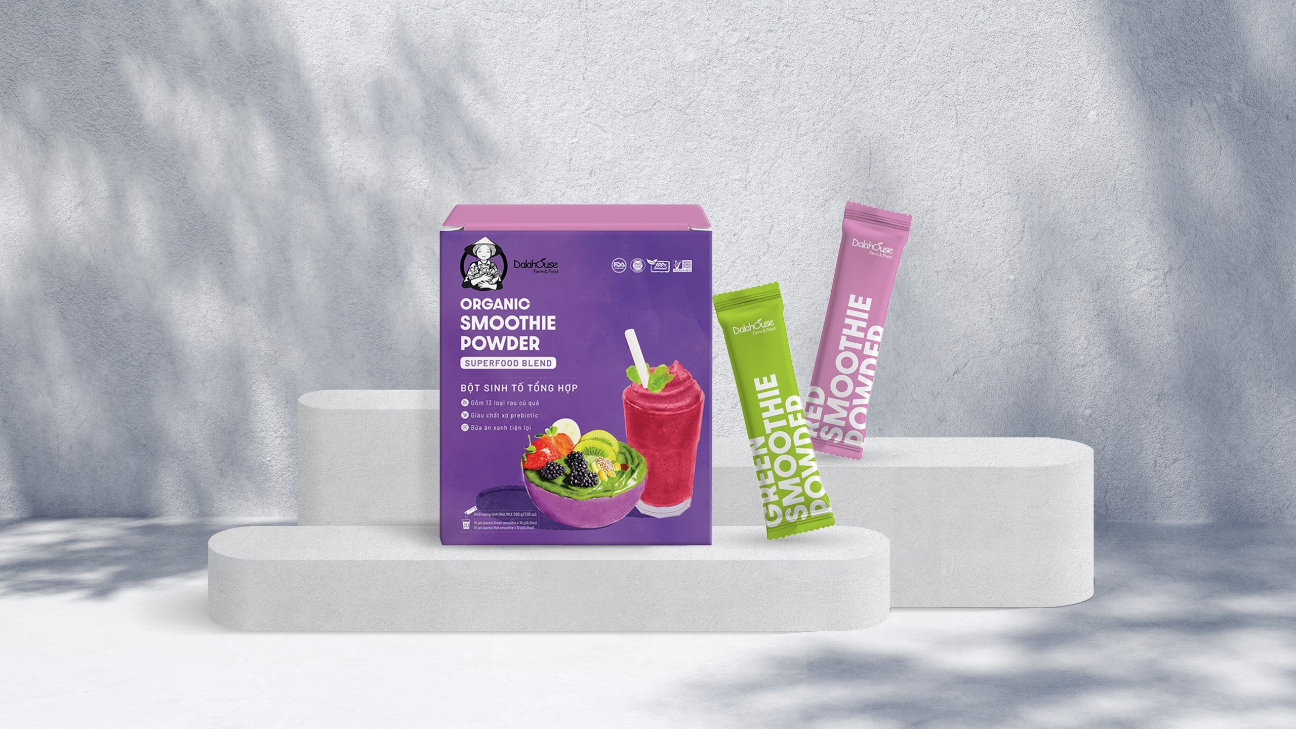 Chỉ mất 5 phút mỗi ngày những vẫn uống được nhiều loại rau xanh cùng lúc. Ai đam mê smoothie thì không nên bỏ qua Bột Sinh Tố Dalahouse.