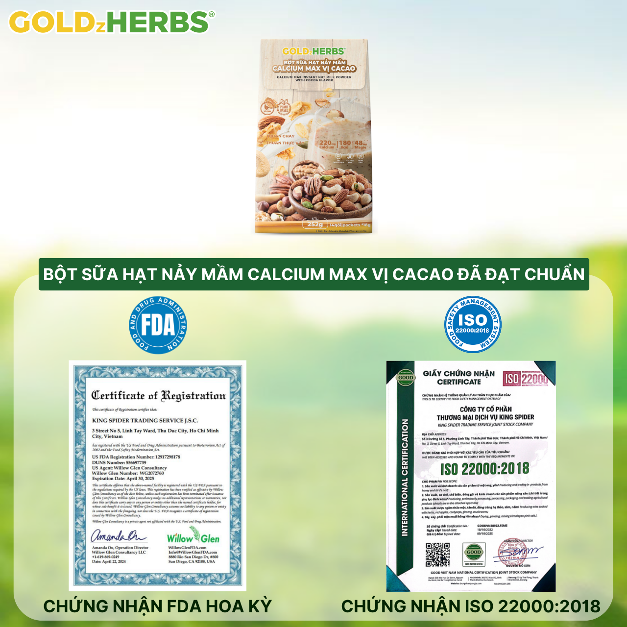 ✨Bột sữa hạt nảy mầm Calcium Max vị cacao GoldzHerbs – 14 gói/ 500g