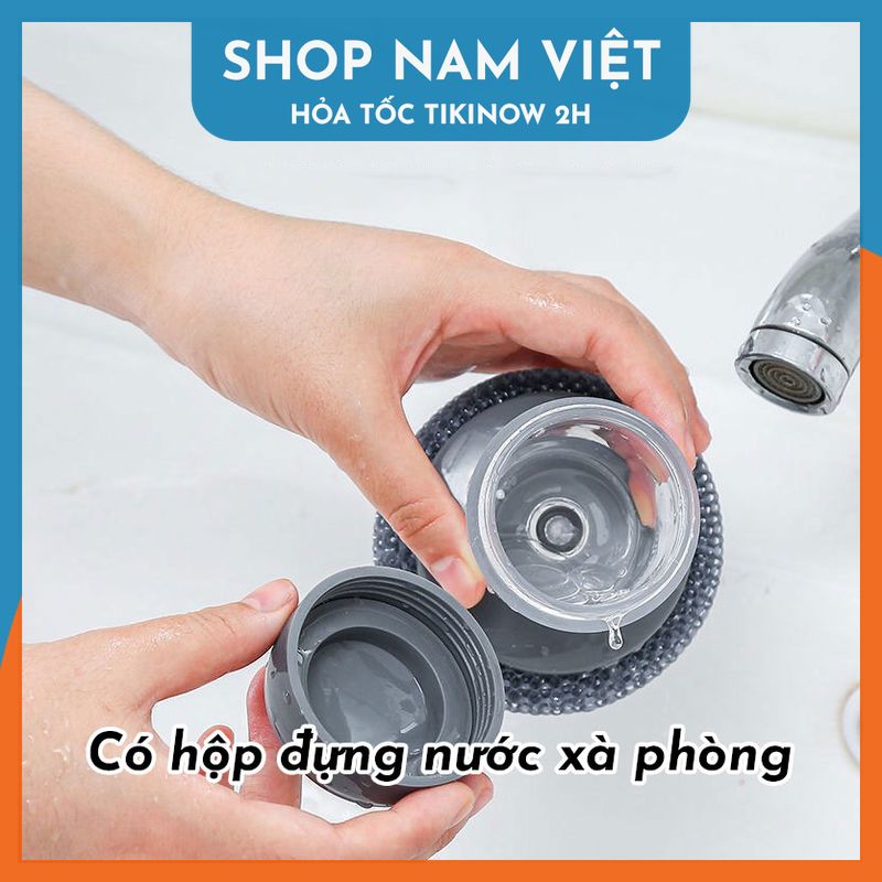 Dụng cụ cọ rửa đa năng, cọ xoong nồi, cọ bếp, cọ rửa bát đĩa có bình chứa tiện lợi