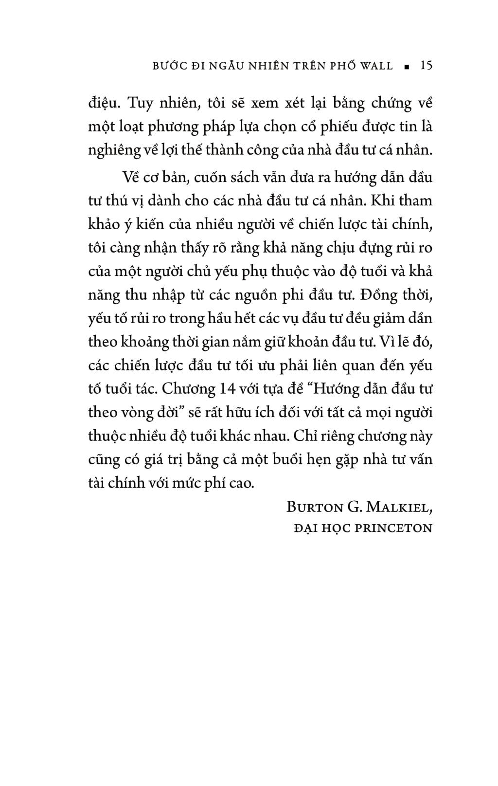 Dù bạn đang dự tính đầu tư vào chứng khoán, trái phiếu, quỹ hưu trí, quỹ tương hỗ, bảo hiểm … thì Bước đi ngẫu nhiên trên Phố Wall cũng là cuốn sách đầu tiên trong danh mục sách cần đọc của bạn.