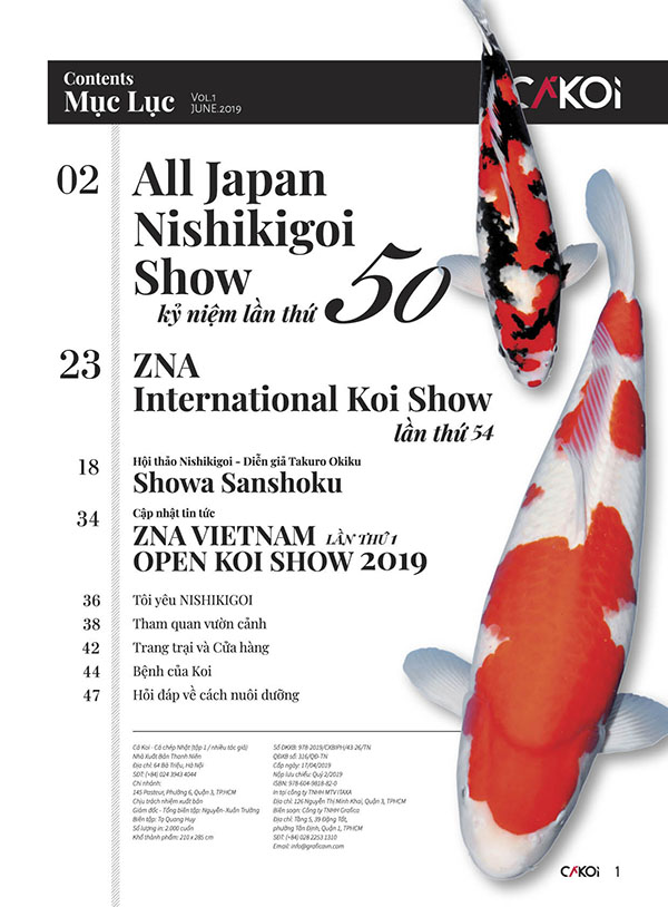“CÁ KOI” là phiên bản tiếng Việt của Gekkan Nishikigoi (Koi Magazine do Shinkokai Nhật Bản phát hành), được phát hành định kỳ 3 tháng tại Việt Nam. Có trong tay quyển “CÁ KOI” nghĩa là có trong tay những thông tin mới, chuẩn xác và chính thống nhất về Koi nói chung, ngành Koi tại Nhật Bản và Việt Nam nói riêng.