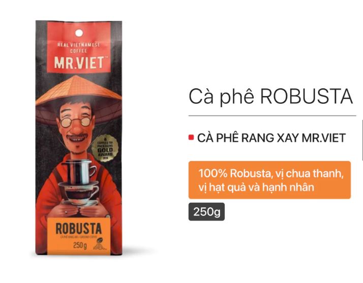 Cà phê rang xay Robusta Mr Viet 250g - Robusta Ground Coffee 250g