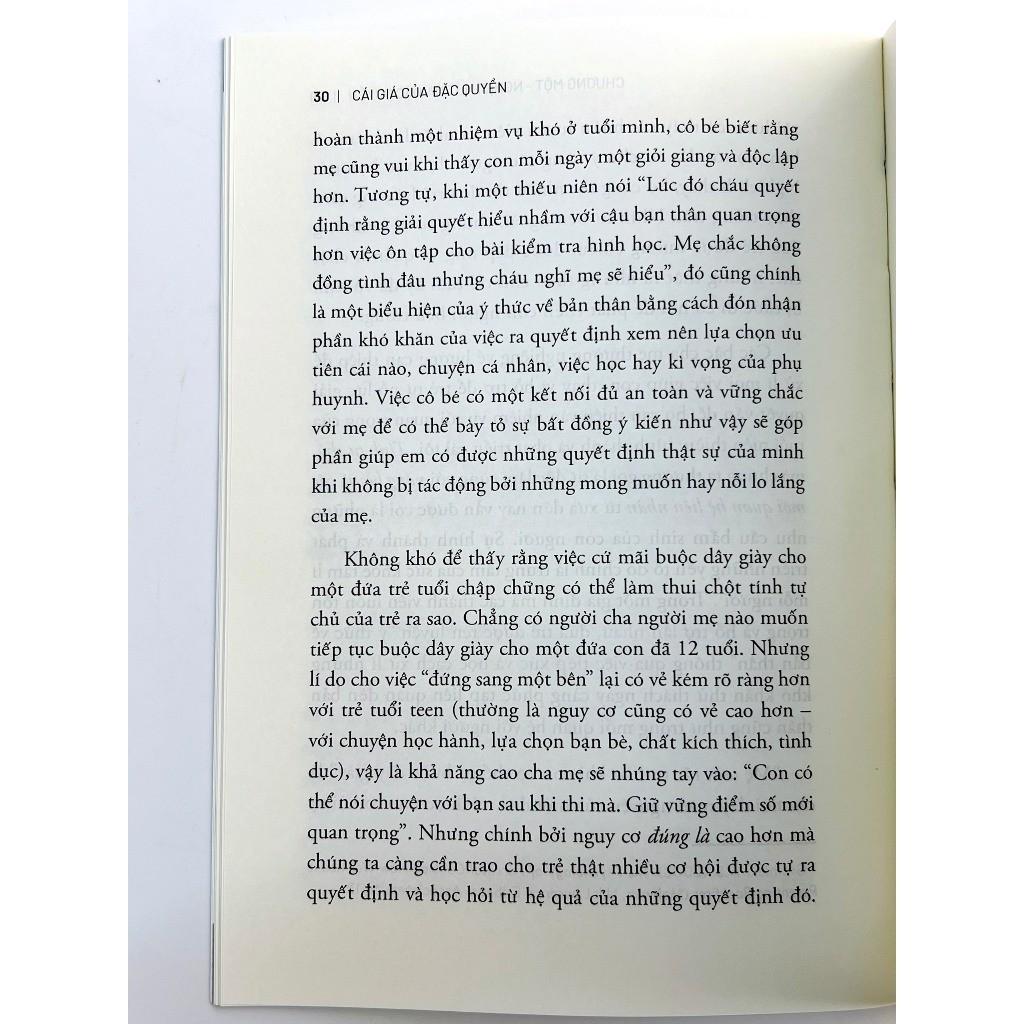 Cái giá của đặc quyền là cuốn sách cần thiết cho các bậc phụ huynh đang hoang mang với những vấn đề ở đứa con tuổi teen của mình. Họ không hiểu vì sao những đứa trẻ dường như “có đủ thứ” mà vẫn khó chịu, ủ dột, thiếu động lực, thậm chí là “hư hỏng”; họ không biết mình đã sai ở đâu và cần bước tiếp như thế nào, không xác định được đâu là những biểu hiện “bình thường” ở một đứa trẻ tuổi teen và đâu là những dấu hiệu cho thấy con cần được can thiệp, hỗ trợ...