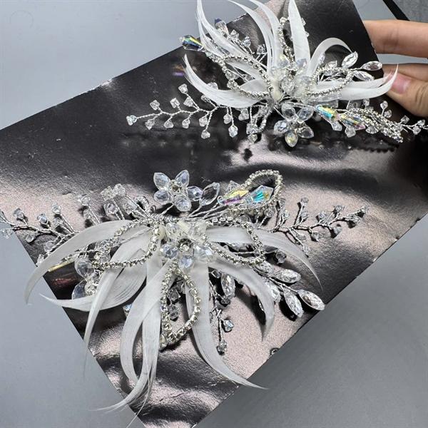 ✨Cài tóc cô dâu lông vũ trắng hết hạt hoa pha lê mới t12/2024
