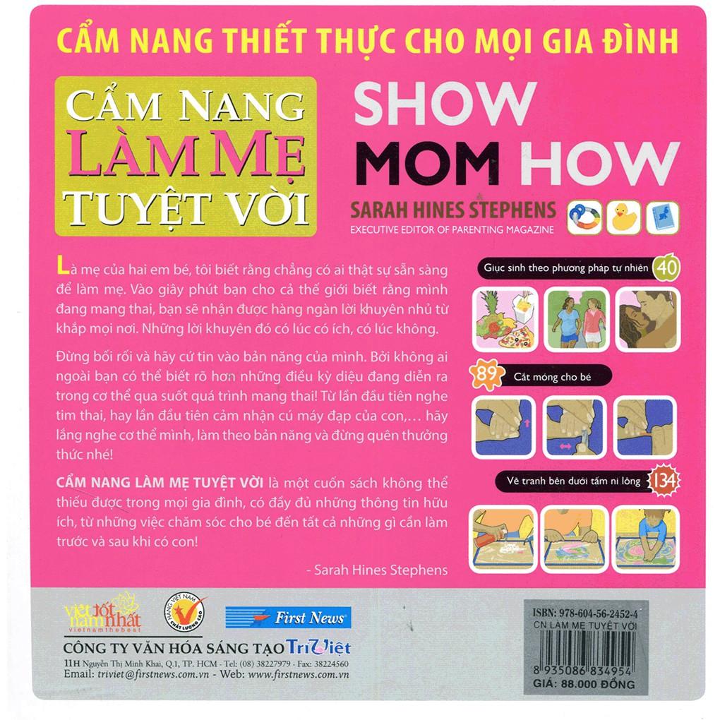 Cẩm Nang làm mẹ tuyệt vời là một cuốn sách không thể thiếu được trong mọi gia đình, có đầy đủ những thông tin hữu ích, từ những việc chăm sóc cho bé đến tất cả những gì cần làm trước vfa sau khi có con!