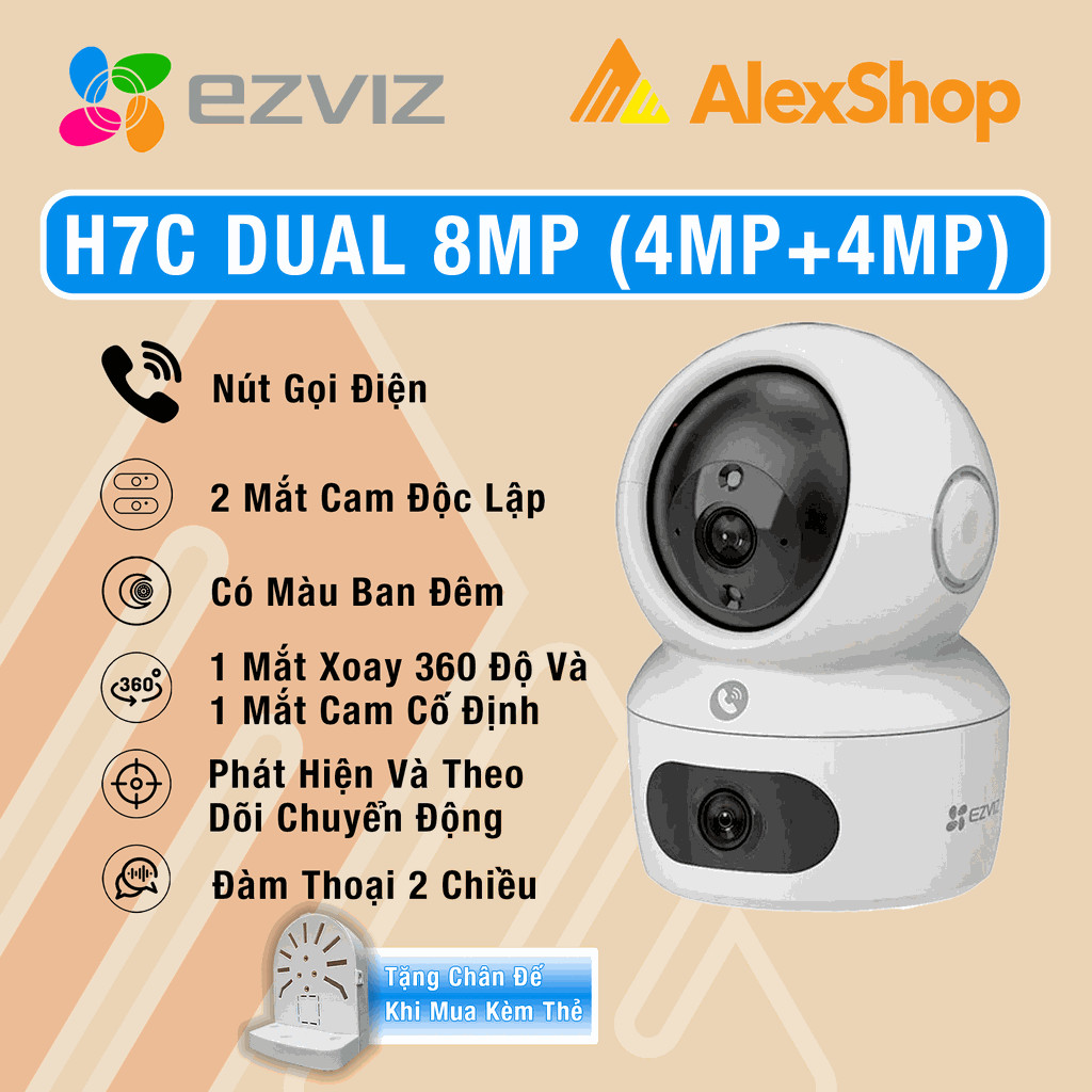 EZVIZ H7C (4MP+4MP) là dòng camera Wifi ống kính kép có độ phân giải 4MP+4MP cho hình ảnh rõ ràng, sắc nét. Camera Ezviz H7C 4MP+4MP giúp ghi lại trong điều kiện ánh sáng yếu với hồng ngoại ban đêm lên đến 15m, tích hợp mic và loa giúp đàm thoại 2 chiều với người thân trong gia đình. Camera ống kính kép H7C 4MP+4MP được trang bị nhiều tính năng hiện đại có thể phát hiện chuyển động thông minh, phát hiện hình dáng con người.