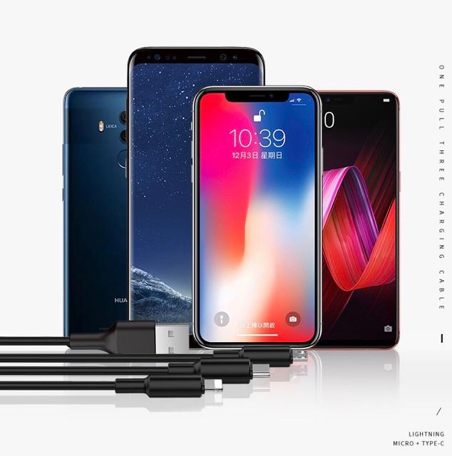 Cáp sạc 3 đầu đa năng thương hiệu Remax -Model: RC199th -Sản xuất tại: Trung Quốc Mô tả: -Giao diện: USB to C+ip+Micro -Dòng sạc : ● Type-C: 4.5V-5A 10V-4A ● iP: 5V-2.4A ● Micro: