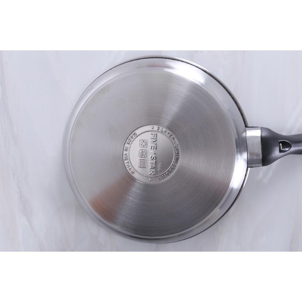 Chảo chống dính có độ dày khoảng 0.5 mm hấp thụ và truyền nhiệt tốt. Chất liệu thép không gỉ với mặt ngoài inox sáng bóng cho chảo thêm sang trọng.