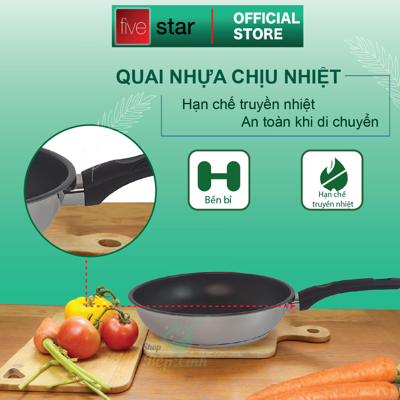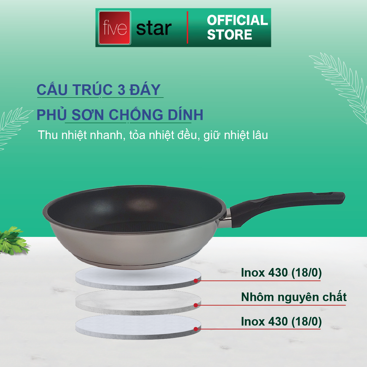 Chảo Fivestar Inox 430 chống dính đáy từ size 20cm, hàng 3 đáy bảo hành 5 năm - Zalo 0986588655