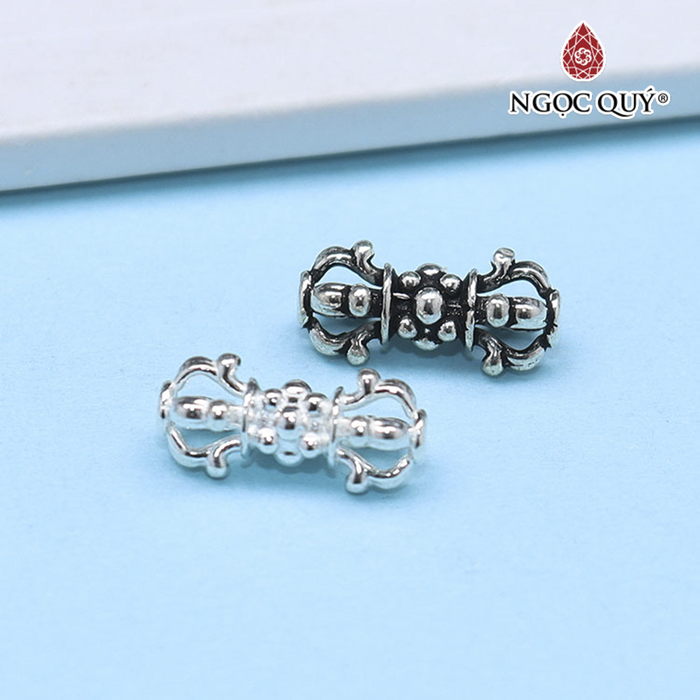 ✨Charm bạc xỏ ngang hình chiếc gậy họa tiết hoa văn - Ngọc Quý Gemstones