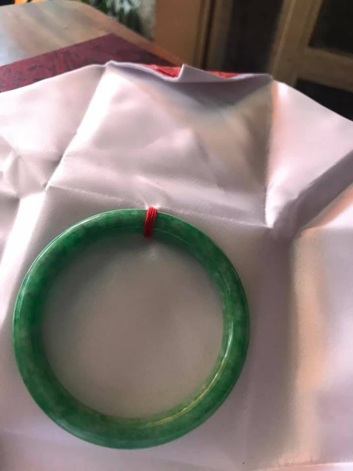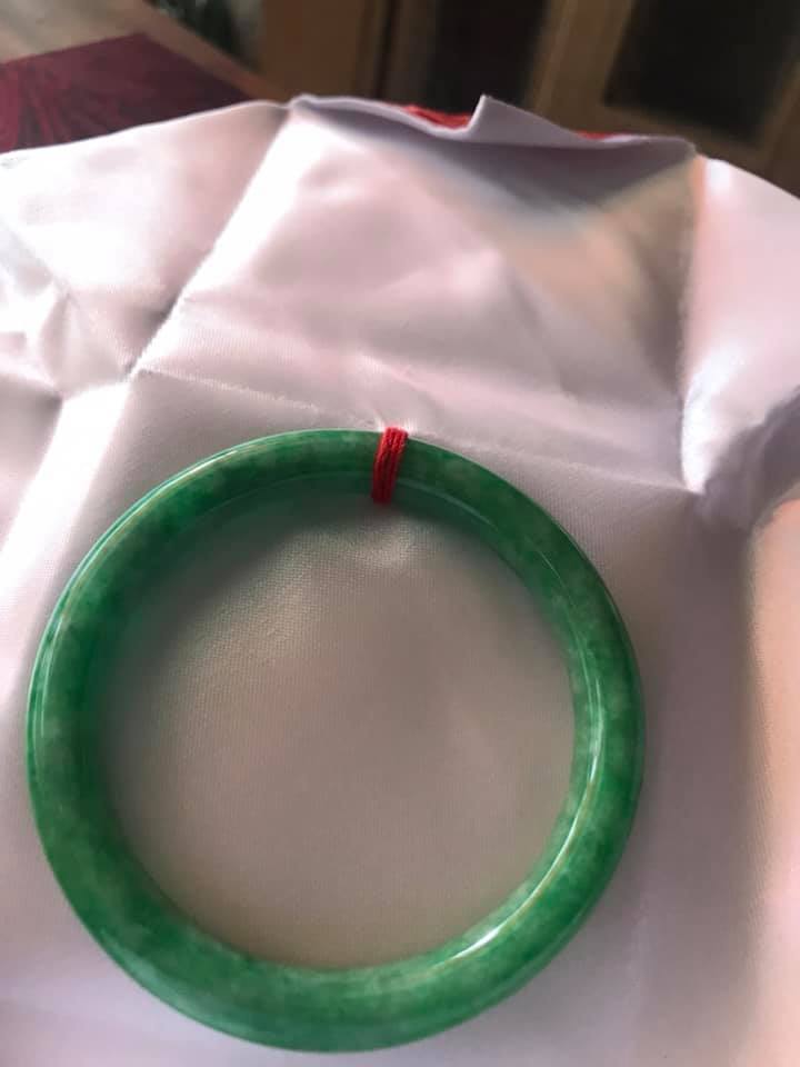 VÒNG BẢN HẸ A SIZE 49 ĐÁ CẨM THẠCH TỰ NHIÊN MÀU XANH LÁ ĐẬM Ở GIỮA LAM TRẮNG ĐỀU VÒNG NỮ 42KG ĐẾN 52KG ĐEO Ạ Sản phẩm này là tài sản cá