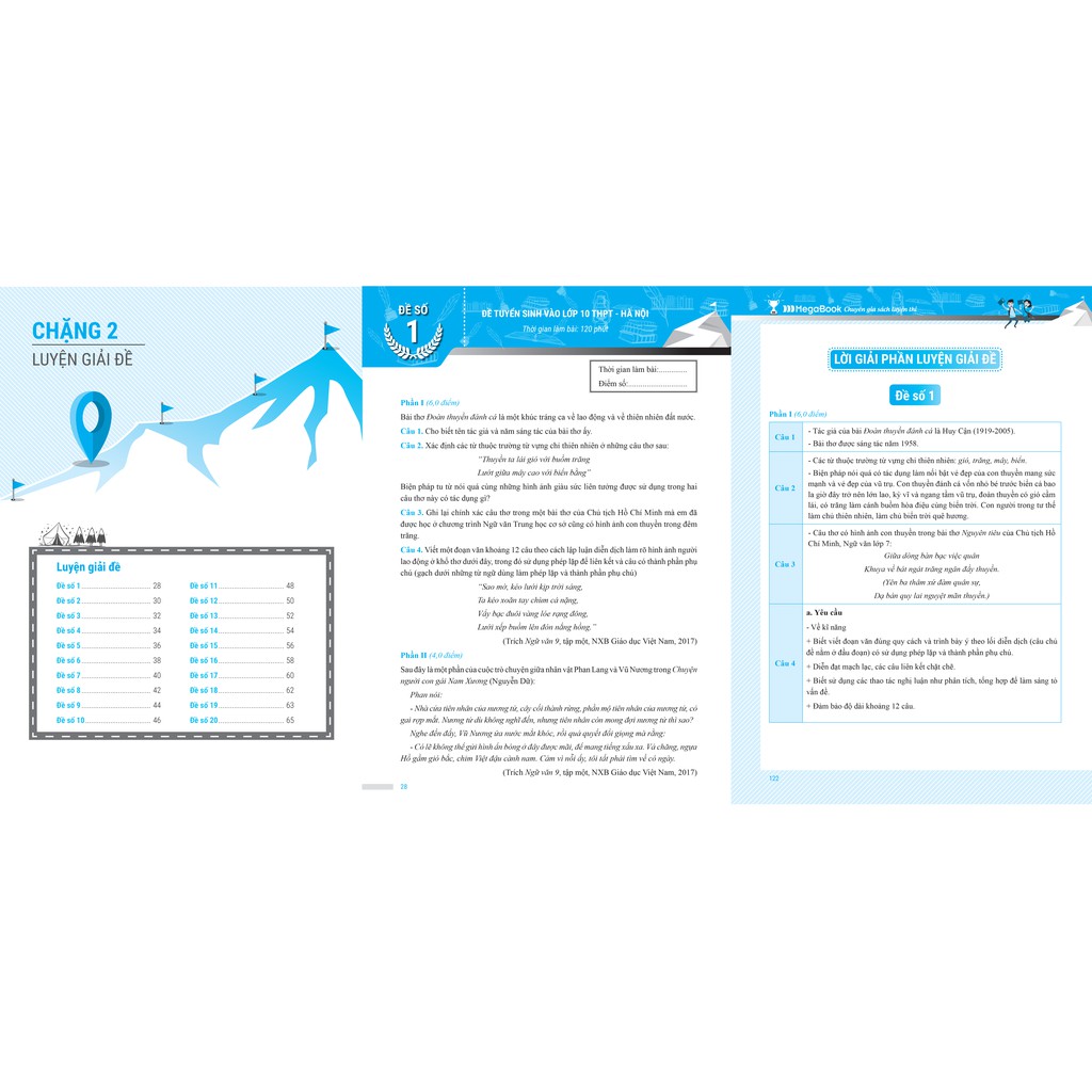 Đây là bộ sách: - Ôn thi vào 10 đầy đủ, chi tiết và mới nhất - Tổng ôn 90 đề then chốt 3 môn kèm giải chi tiết - Tích hợp các chuyên đề hay và khó, trọng tâm chương trình thi - Trang bị kỹ năng và mẹo làm bài - Phù hợp cho học sinh lớp 9 mọi năng lực, từ trung bình đến khá giỏi. 7 ƯU ĐIỂM NỔI BẬT CHỈ CÓ Ở CHINH PHỤC ĐỀ THI VÀO 10 MÔN VĂN (TÁI BẢN) – Phiên bản NEW Bộ đề mới nhất 1. Cuốn sách ôn thi vào 10 đầy đủ và chi tiết nhất Toàn bộ chương trình ôn thi vào 10 môn Ngữ văn được cô đọng chỉ trong 1 cuốn sách, các em được ôn lại kiến thức cũ, ghi nhớ kiến thức mới, và từ đó vận dụng nhuần nhuyễn kiến thức vào các đề thi cụ thể. 2. Tích hợp 3 chuyên đề trọng tâm trong chương trình thi Các chuyên đề trọng tâm: Đọc – hiểu văn bản, Nghị luận xã hội, Nghị luận văn học được tổng hợp ngắn gọn – khoa học – đầy đủ thông qua hệ thống bảng biểu, sơ đồ tư duy. Phương pháp ôn tập chú trọng vào “Rèn từ gốc” – Học đến đâu chắc đến đó, giúp học sinh ôn luyện dễ dàng và hiệu quả nhờ học chắc – hiểu sâu tất tần tật các chuyên đề trọng tâm. 3. Tổng ôn 30 đề kèm giải chi tiết – 2 chặng then chốt Chặng 1: Luyện giải 20 đề chi tiết Chặng 2: Tự luyện 10 đề thi thật, chọn lọc từ các tỉnh thành trên toàn quốc Tổng ôn 30 đề thi được biên soạn, chọn lọc chất lượng nhất, bám sát đề thi thật kỳ thi tuyển sinh vào 10 các năm gần đây và định hướng của Bộ Giáo dục & Đào tạo. Quá trình luyện đề được xem là quan trọng nhất, quyết định trực tiếp đến kết quả bài thi, vừa vận dụng kiến thức, vừa làm quen với các dạng bài. Với 30 đề thi tương đương với 30 lần làm bài thi thử, các em được thực hành giải đề, nâng cao kỹ năng, không còn bỡ ngỡ khi bước vào bài thi thật. 4. Trang bị kỹ năng và mẹo làm bài Cấu trúc lời giải theo hướng: Lời giải chi tiết – Nhắc lại tất tần tật kỹ năng làm bài, tổng hợp lại kiến thức trọng tâm nhất. Các em tự nhận xét được năng lực bản thân, thấy được lỗi sai cần tránh, kịp thời lấp đầy lỗ hổng kiến thức, tìm ra phương pháp làm bài văn từ đúng – đủ ý đến hay – sâu, từ đó nâng cao năng lực và điểm số của bản thân. 5. Bổ sung Tóm tắt các tác phẩm văn học Các tác phẩm văn học trọng tâm được tóm lược đầy đủ các kiến thức cơ bản mà học sinh lớp 9 cần nhớ nhất như Tác giả, tác phẩm, giá trị nội dung và nghệ thuật, các hình ảnh, hình tượng văn học. 6. Phù hợp cho học sinh lớp 9 mọi năng lực Cuốn sách được biên tập khoa học, phù hợp với mọi đối tượng học sinh có học lực từ trung bình – khá đến giỏi. Kiến thức được biên soạn từ cơ bản đến nâng cao giúp học sinh có học lực trung bình củng cố vững chắc kiến thức nền tảng, vận dụng với các bài tập cơ bản; học sinh có học lực khá, giỏi nâng cao tư duy và kỹ năng giải đề với các bài tập vận dụng nâng cao. 7. Bí kíp bỏ túi – Tổng hợp kiến thức Hiểu được khó khăn của các em khi cần tra cứu nhanh, ghi nhớ nhanh, Megabook đã tổng hợp toàn bộ kiến thức và công thức quan trọng nhất thành một tờ bí kíp đặc biệt. Bí kíp được thể hiện dưới dạng mindmap – sơ đồ tư duy ngắn gọn, nổi bật, dễ học, cần là có – khó là mở, tối ưu hiệu quả ôn tập cho các em. Với những ưu điểm trên, Chinh phục đề thi vào 10 (Tái bản) chính là bộ sách hoàn hảo đồng hành cùng các bạn học sinh lớp 9 chinh phục mục tiêu thi đậu vào ngôi trường mơ ước!