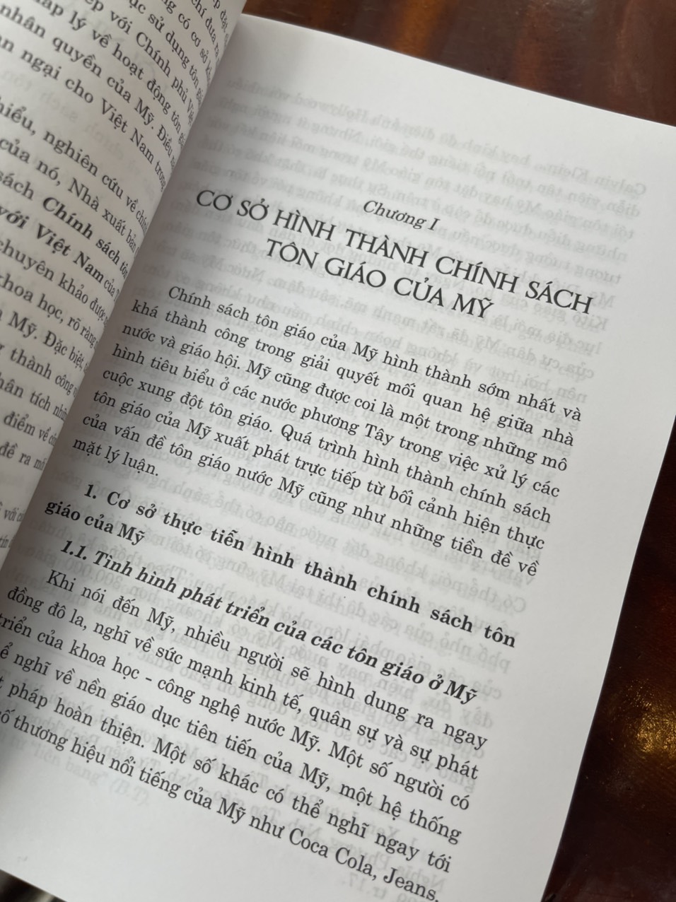 Chính sách tôn giáo của M.ỹ và góc nhìn tham chiếu với Việt Nam của Tiến sĩ Phạm Thanh Hằng. Đây là công trình chuyên khảo được nghiên cứu rất công phu và trình bày một cách khoa học, rõ ràng những vấn đề cơ bản của chính sách tôn giáo của Mỹ. Đặc biệt, tác giả đem đến một “góc nhìn” mới, chỉ ra những thành công và hạn chế trong chính sách tôn giáo của Mỹ và phân tích những tác động đối với Việt Nam; làm sâu sắc hơn quan điểm về công tác tôn giáo của Dảng C.ộ s.ản Việt Nam được đề ra mới nhất trong Văn kiện Đại hội XIII.