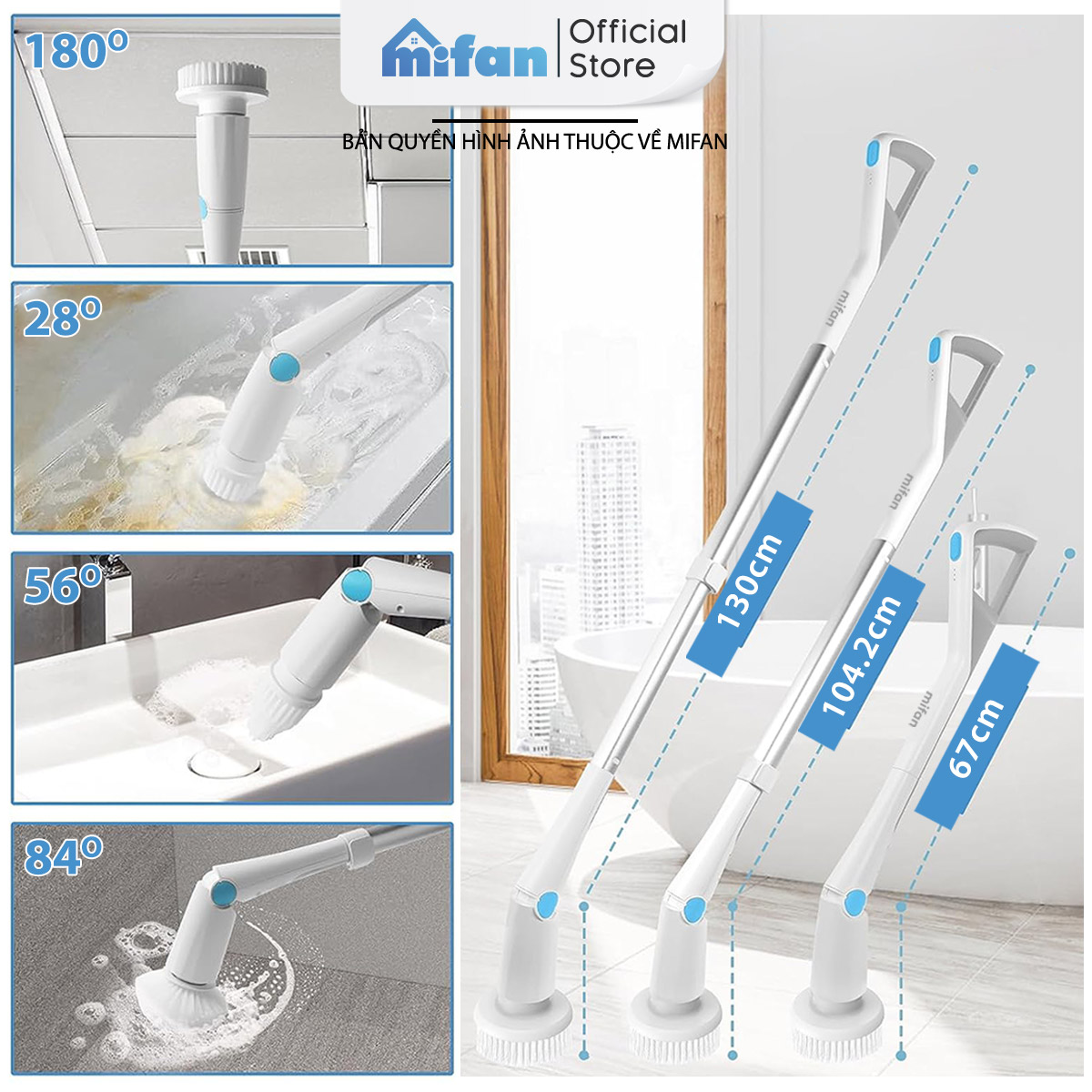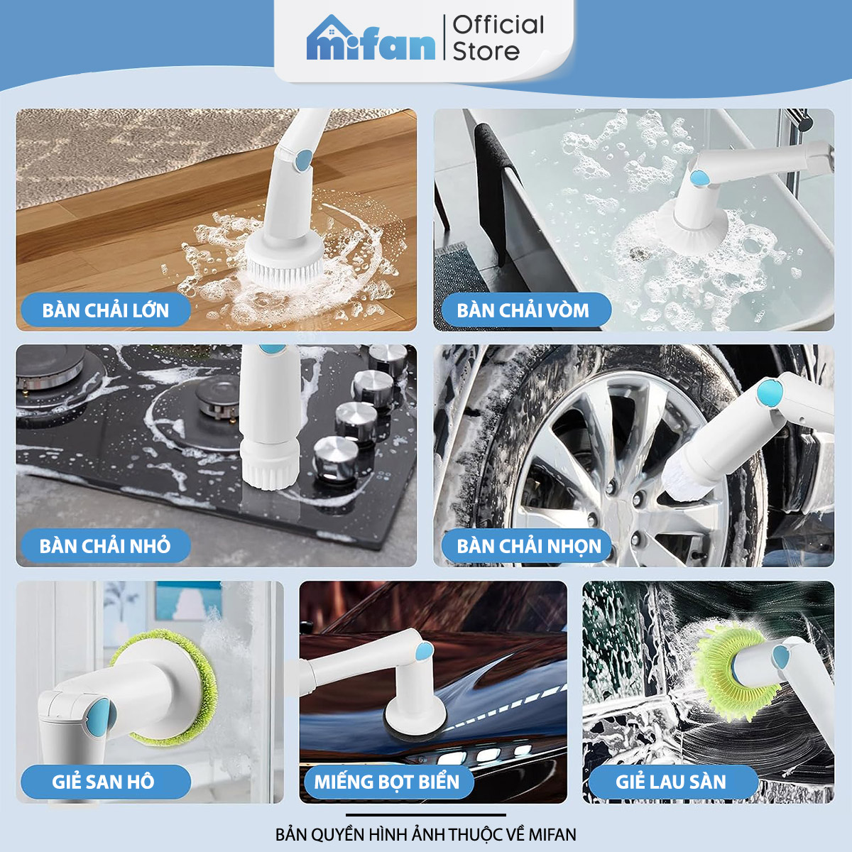 Bàn Chải Cọ Điện Đa Năng 7 Trong 1 Mifan C3 - Chà rửa cực mạnh - Công suất 84W, Chống nước IPX7, Pin sạc 2000mAh, Kèm 7 đầu chổi - Vệ sinh bếp, phòng tắm, sàn, tường, cửa kính