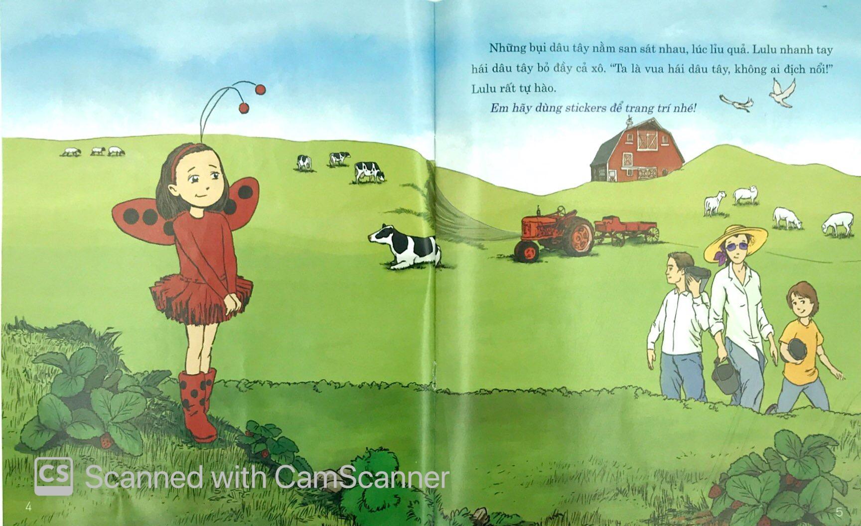 · Cuốn “Cô bé Bọ Rùa về nông trại” (Đọc truyện – Dán hình): Một ngày đẹp trời, Cô bé Bọ Rùa và bố mẹ về thăm nông trại. Em hãy cùng Cô bé Bọ Rùa trang trí cho nông trại thật xinh đẹp với 75 stickers nhé!