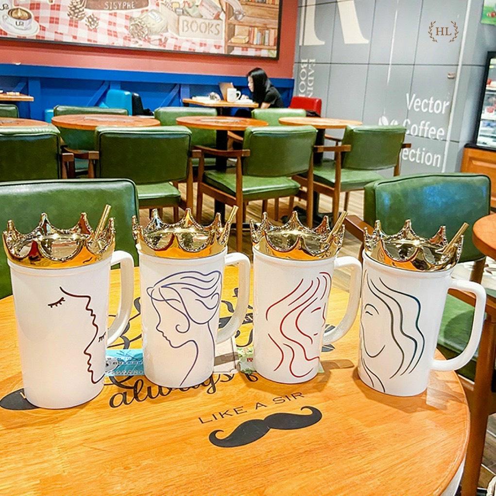 Ca sứ kèm ống hút inox vàng kim | Cốc sứ Hot Trend 2022 | Ca sứ có nắm đậy kèm ống hút Size To nắp Queen vương miệng