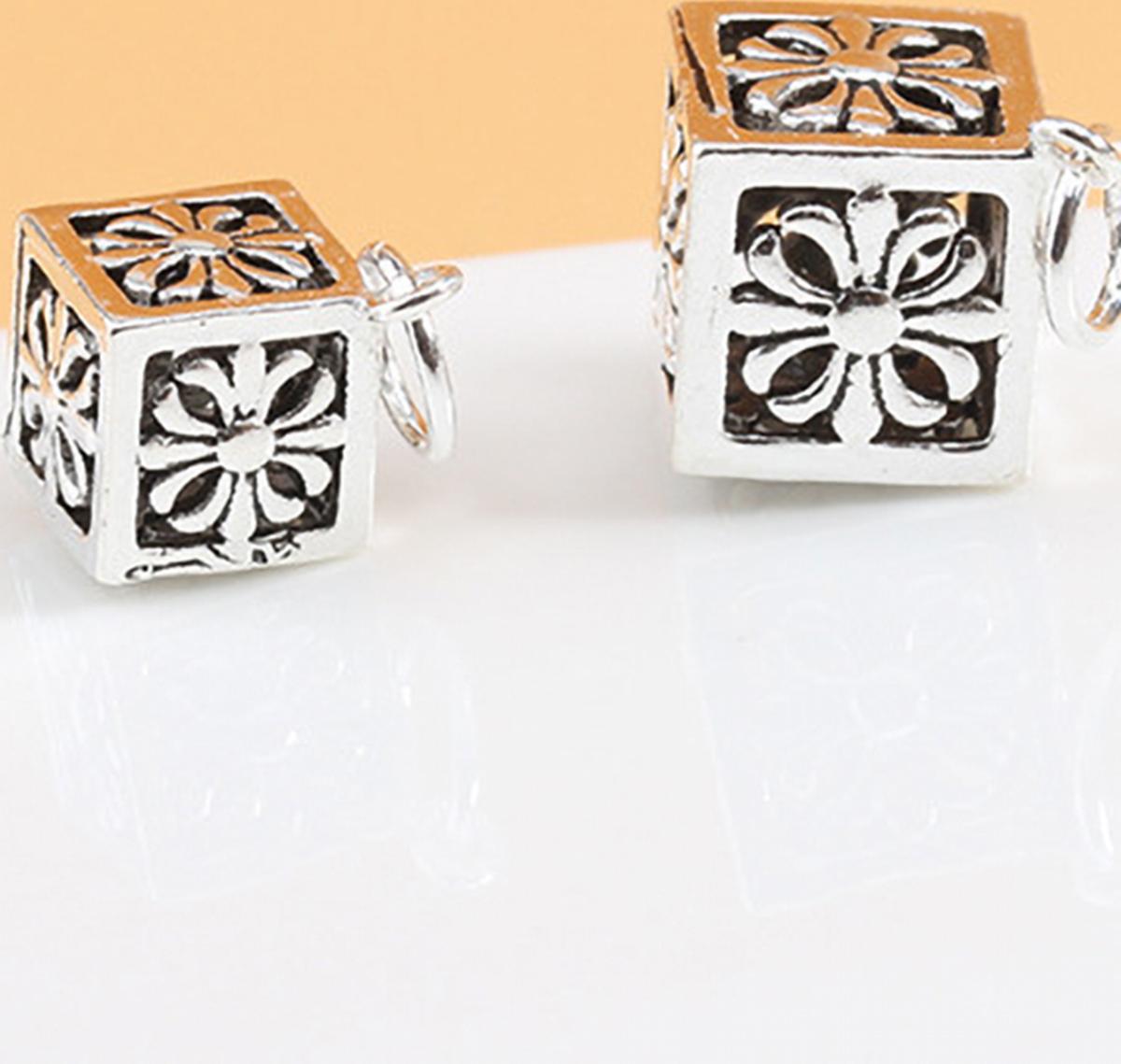 CHARM BẠC HÌNH VUÔNG HOA VĂN TREO: