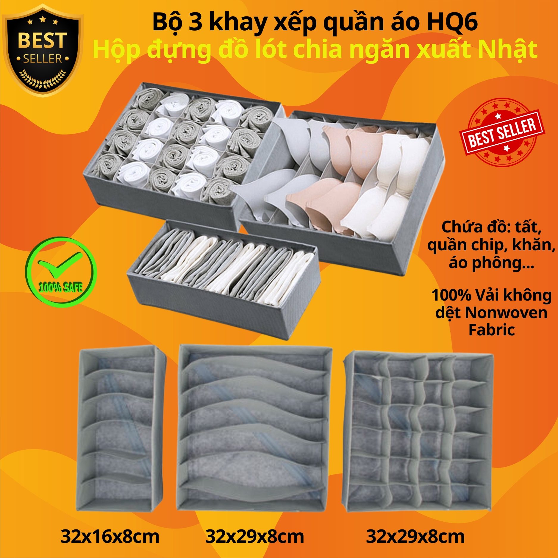 Bộ 3 hộp đựng đồ lót gọn nhẹ chia ngăn tiện lợi xuất Nhật