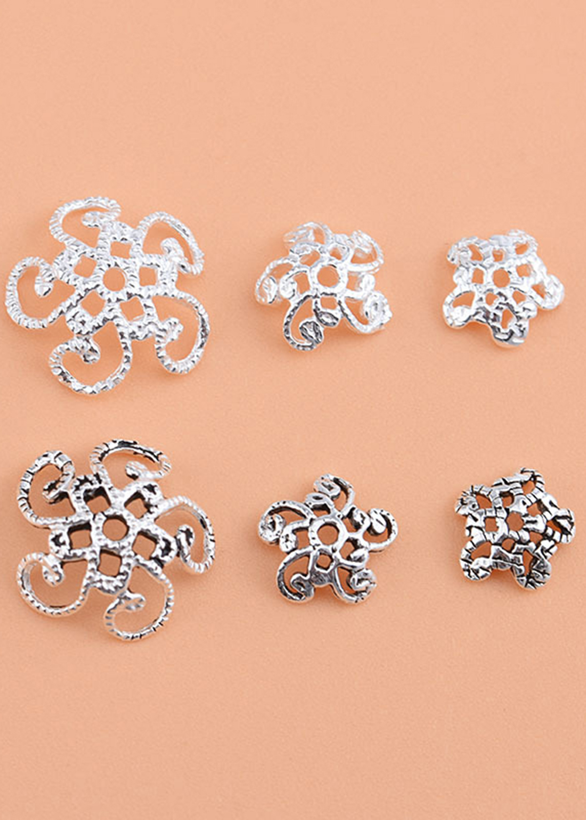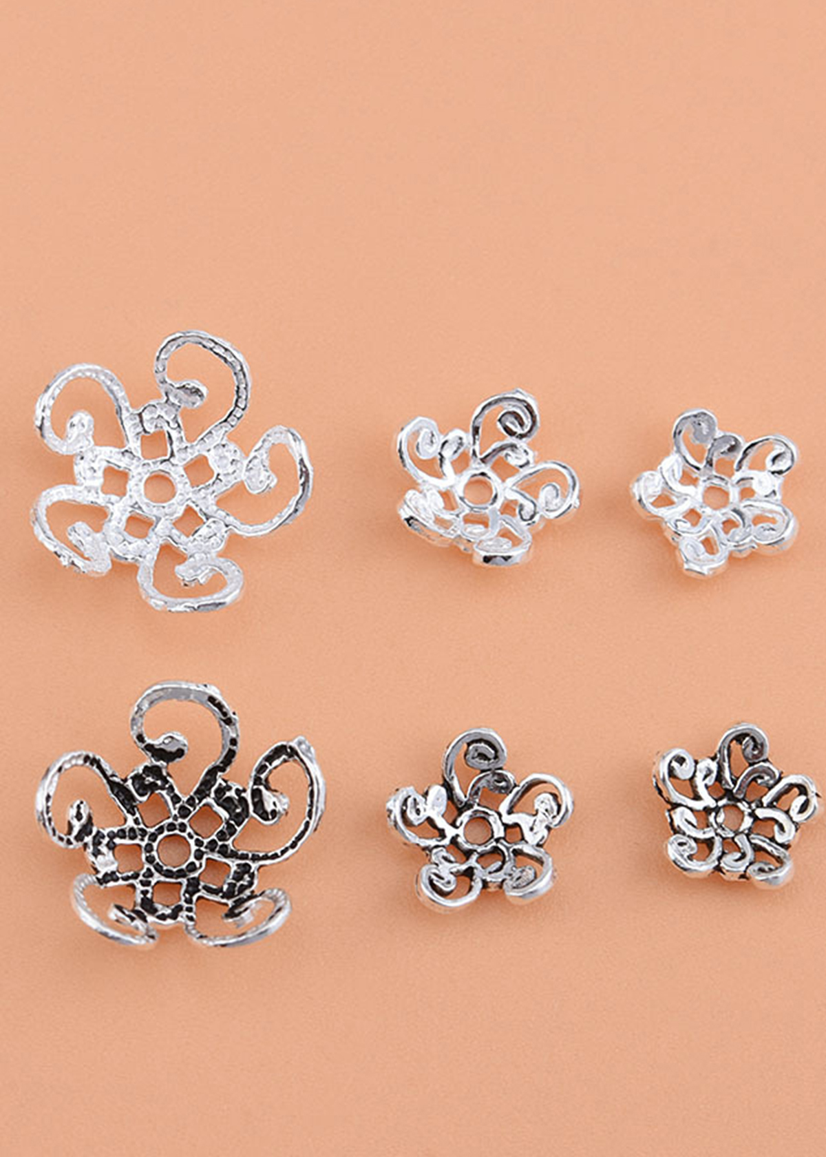 CHARM BẠC CHỤP HẠT , BỌC HẠT XỎ HÌNH HOA TUA RUA :