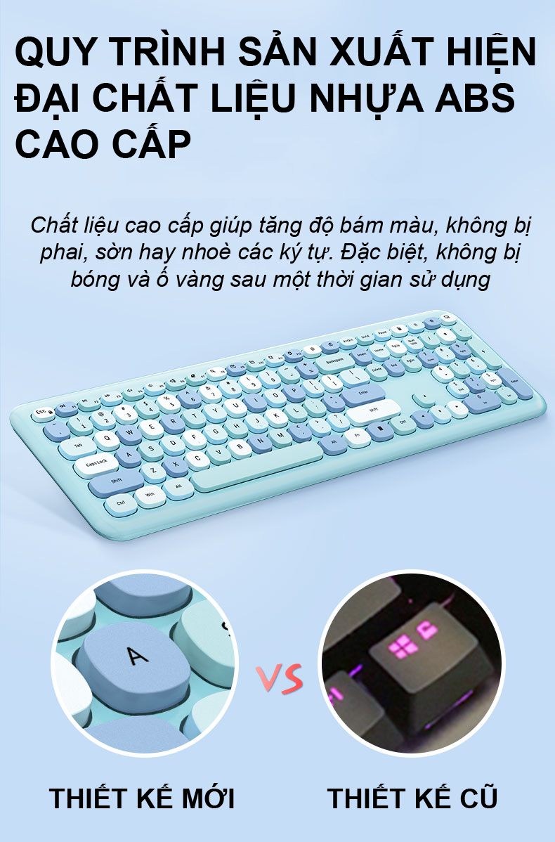 Không dây RF 2.4G: Công nghệ RF 2.4G, phạm vi không dây lên tới 10 mét. Bàn phím thoải mái và yên tĩnh: Bàn phím cấu hình thấp giúp gõ thoải mái. Bàn phím chống tràn: Thiết kế