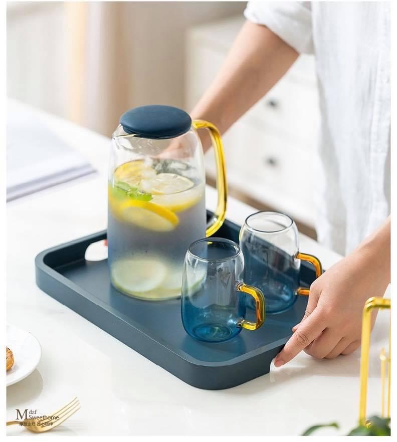 Bộ bình thuỷ tinh chịu nhiệt màu vàng gôn kèm 6 cốc phong cách Bắc Âu tạo ra một cảm giác sang trọng và vô cùng hiện đại