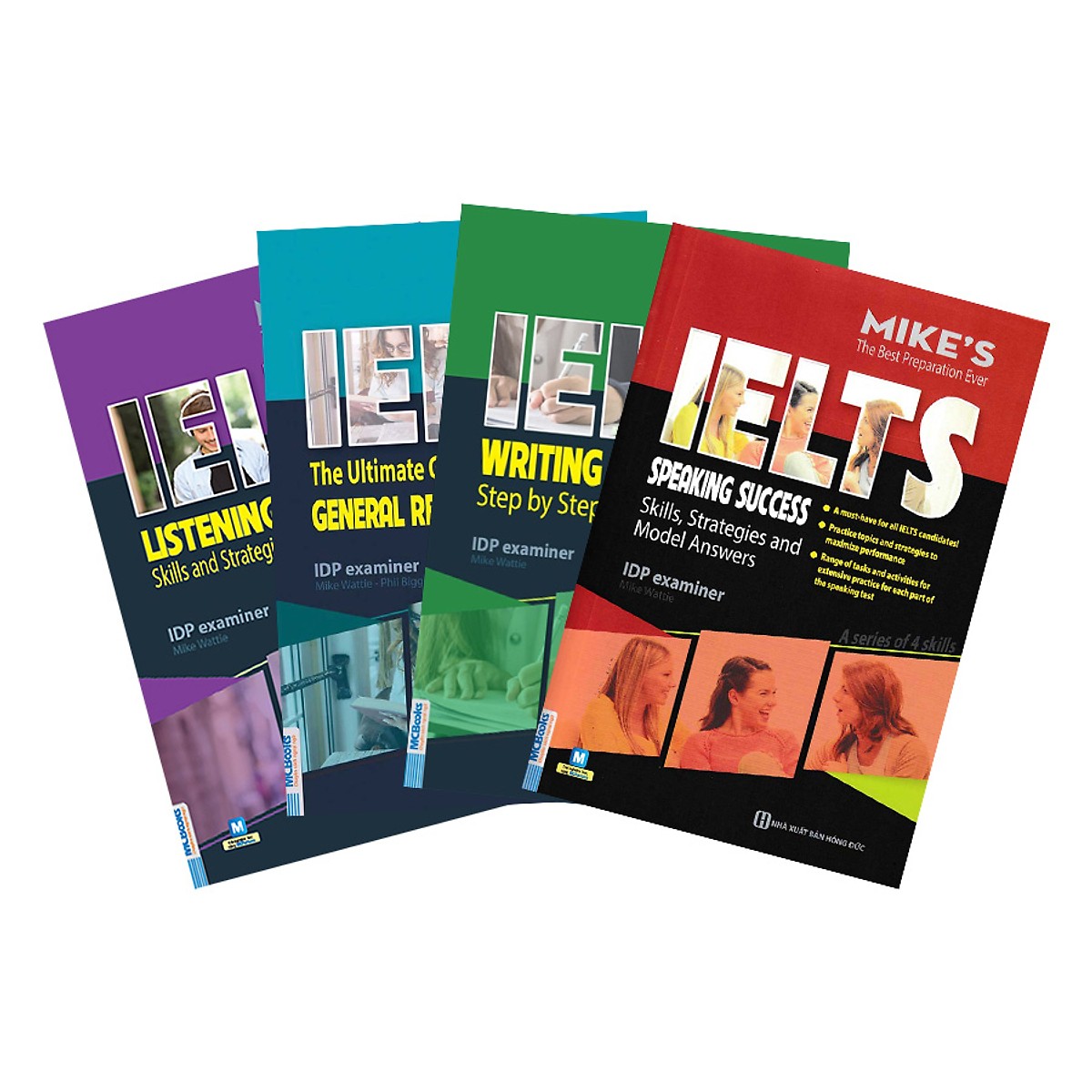 Bộ sách gồm 4 cuốn: IELTS WRITING: Step By Step + Ielts Speaking Success: Skills Strategies and Model Answers + The Ultimate Guide to Academic Reading ( Học thuật) + Ielts Listening : Skills and Strategies