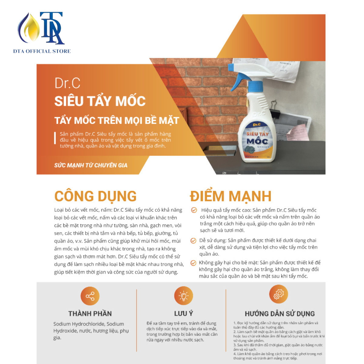 I.Tẩy Mốc Quần Áo,Tẩy Mốc Tường,Tẩy Mốc Gioăng Cao Su Máy Giặt,Tẩy Mốc Nệm Gối Siêu Sạch,Tẩy Khe Cửa Ố Đen Dr.C 300ml