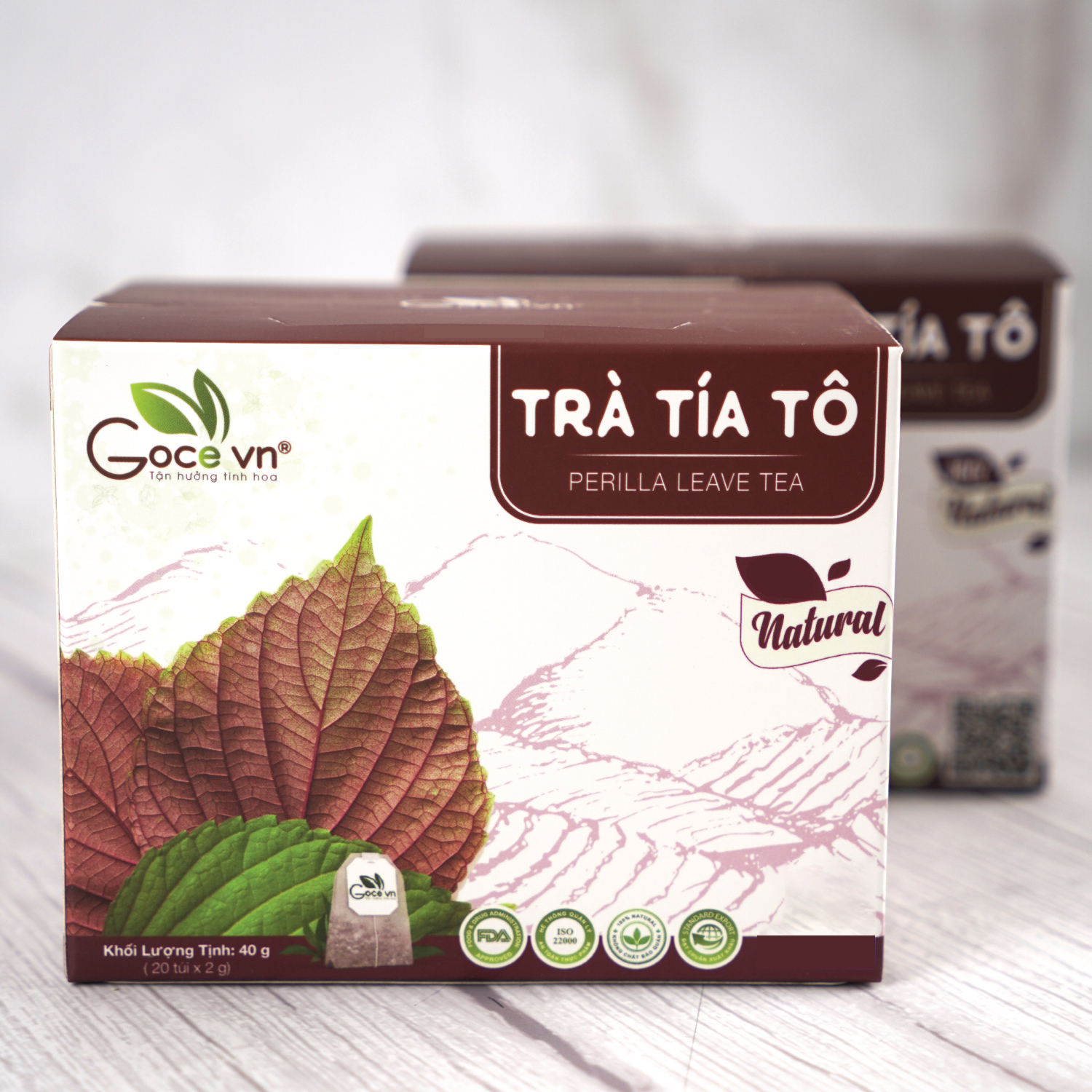 ✨Combo Giải cảm, Giảm ho Goce (1 hộp Trà tía tô 40g, 1 hộp Bột tía tô 72g)