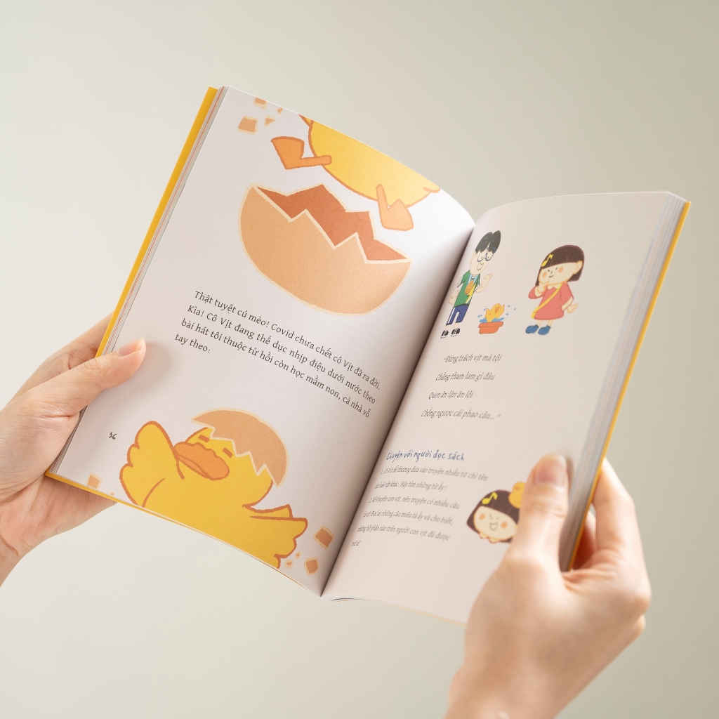 “Covid Chưa Qua, Cô Vịt Đã Tới” là cuốn sách dành cho các độc giả nhí từ 6 tuổi, bao gồm 18 câu chuyện ngắn xoay quanh cuộc sống gia đình và trường học của bé Lala, một cô bé lớp 2 hồn nhiên. Những mẩu truyện nhỏ của “Covid Chưa Qua, Cô Vịt Đã Tới” được Lala nhìn thấy trên đường đi học, trong góc bếp,… luôn rất trong trẻo và tràn ngập tiếng cười với những kỷ niệm đáng nhớ bên gia đình và bạn bè. Dù chỉ là những câu chuyện ngắn, mỗi chi tiết đều giàu giá trị của tình cảm gia đình và cộng đồng, luôn tràn ngập niềm vui và sự lạc quan. Điều đặc biệt trong những câu chuyện thường ngày của bé Lala đó là chúng đều gắn liền với những nét văn hoá Việt Nam mà các em vốn rất thân thuộc như câu chuyện ngày Nguyên Tiêu, truyện cố tích đất Phương Nam, Tết và ngày hội đập heo đất,… để giúp các bạn nhỏ hiểu thêm về những nét đẹp văn hóa trong chính cuộc sống của mình