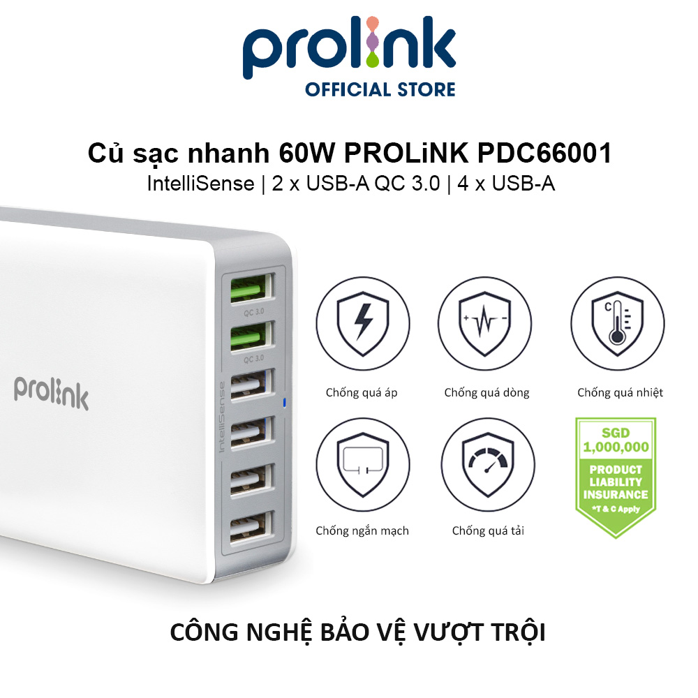 Củ sạc nhanh 60W PROLiNK PDC66001, 6 cổng 2xUSB-A QC 3.0 & 4xUSB-A, IntelliSense, sạc điện thoại, máy tính bảng, laptop - Hàng chính hãngCủ sạc nhanh 60W PROLiNK PDC66001, 6 cổng 2xUSB-A QC 3.0 & 4xUSB-A, IntelliSense, sạc điện thoại, máy tính bảng, laptop - Hàng chính hãngCủ sạc nhanh 60W PROLiNK PDC66001, 6 cổng 2xUSB-A QC 3.0 & 4xUSB-A, IntelliSense, sạc điện thoại, máy tính bảng, laptop - Hàng chính hãngCủ sạc nhanh 60W PROLiNK PDC66001, 6 cổng 2xUSB-A QC 3.0 & 4xUSB-A, IntelliSense, sạc điện thoại, máy tính bảng, laptop - Hàng chính hãngCủ sạc nhanh 60W PROLiNK PDC66001, 6 cổng 2xUSB-A QC 3.0 & 4xUSB-A, IntelliSense, sạc điện thoại, máy tính bảng, laptop - Hàng chính hãng