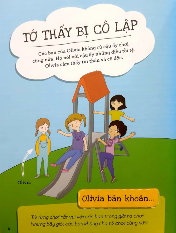Các vấn đề sẽ được hóa giải nhẹ nhàng bằng tình yêu và quan tâm. Các cảm xúc được lật đi lật lại từ góc độ của trẻ và của bố mẹ lẫn bạn bè, để mọi người đều nhìn nhận thấu đáo. Xuyên suốt mỗi cuốn sách là các câu chuyện gần gũi dễ hiểu, kèm lời khuyên và giải pháp cụ thể cho trẻ. Cuối sách còn có hướng dẫn rất thiết thực để bố mẹ áp dụng.