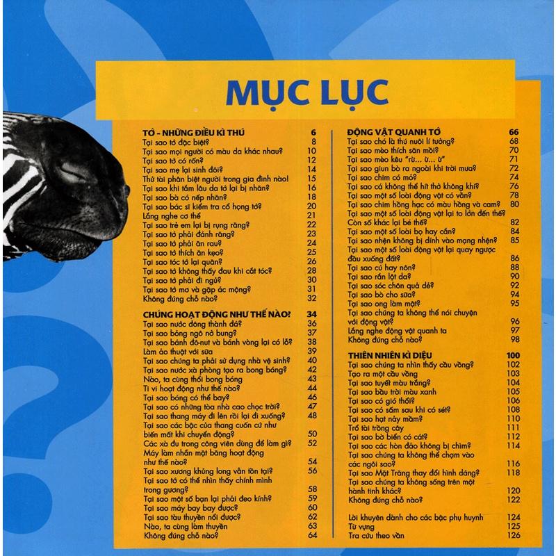 Bộ sách tuyển chọn câu hỏi mà trẻ em tò mò nhất với tiêu trí thú vị , thần kỳ , mới mẻ , đặc sắc . Trong cuốn sách có lời giải thích khoa