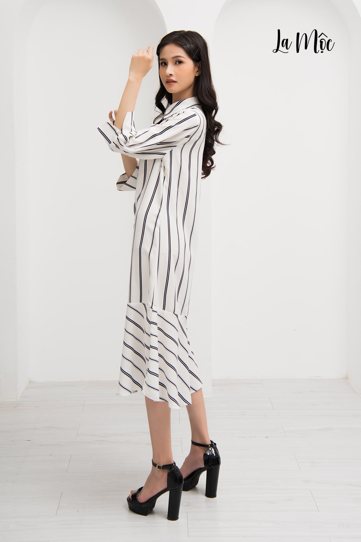 Đầm sơ mi trắng sọc họa tiết La Mộc chất liệu lụa Korea là mẫu thiết kế dành riêng cho những cô nàng ưa thích sự sành điệu. Thiết kế chú trọng từng đường may. Phong cách trẻ trung, thanh lịch làm nổi bật được thần thái của người mặc