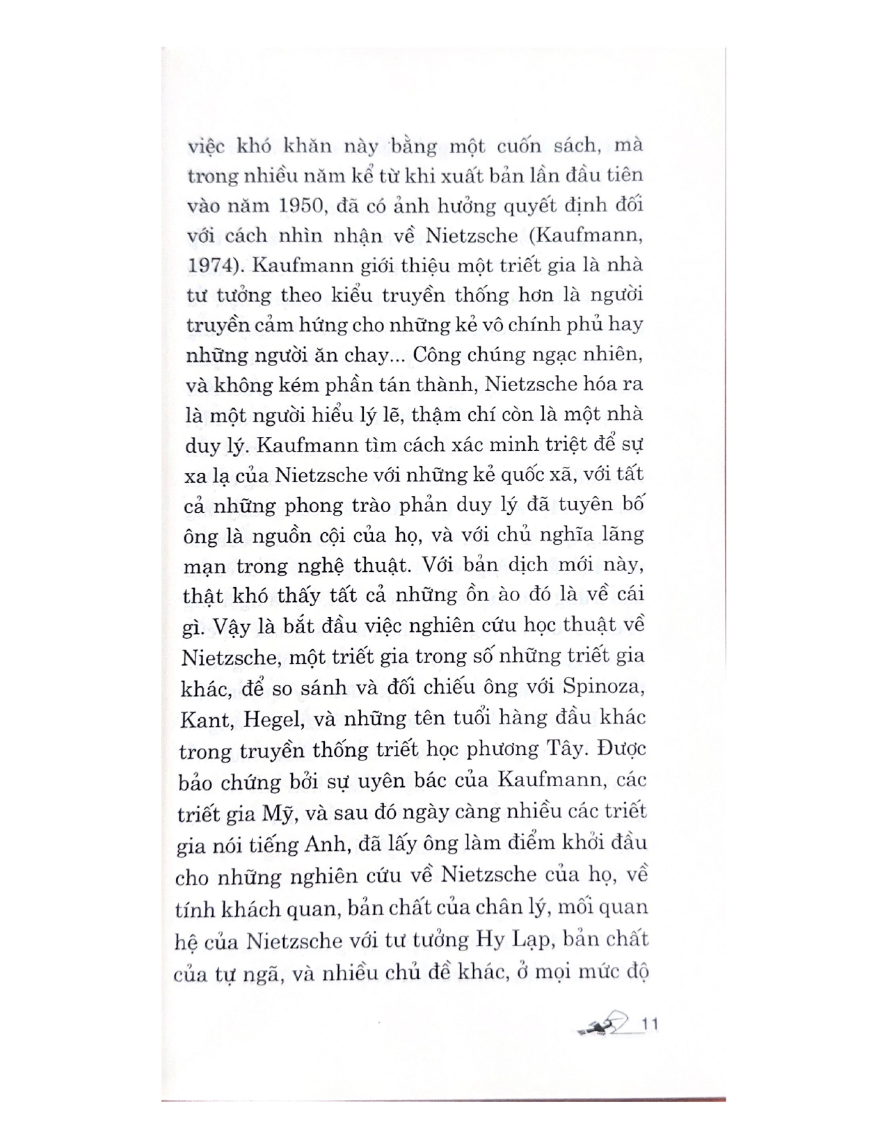 Triết gia Đức Friedrich Nietzsche (1844-1900) là nhân vật mà tên tuổi vẫn được những người theo các quan điểm đa dạng và trái ngược nhất viện đến để tìm cách biện minh cho mình, những người tìm được nguồn cảm hứng từ các tác phẩm của ông, những người vô chính phủ, những nhà nữ quyền, những kẻ quốc xã, những người sùng bái tôn giáo, những người ăn chay, những nghệ sĩ tiền phong, những tín đồ của văn minh vật chất, những người bảo thủ và nổi loạn trong chính trị và triết học… nhưng danh sách này chắc chắn không dừng lại ở đó. Hầu như không có một nhân vật văn hóa hay nghệ thuật nào ở Đức và nói chung toàn bộ thế giới phương Tây trong chín mươi năm qua lại không thừa nhận đã chịu ảnh hưởng từ ông, kể từ Thomas Mann cho đến Jung và Heidegger.