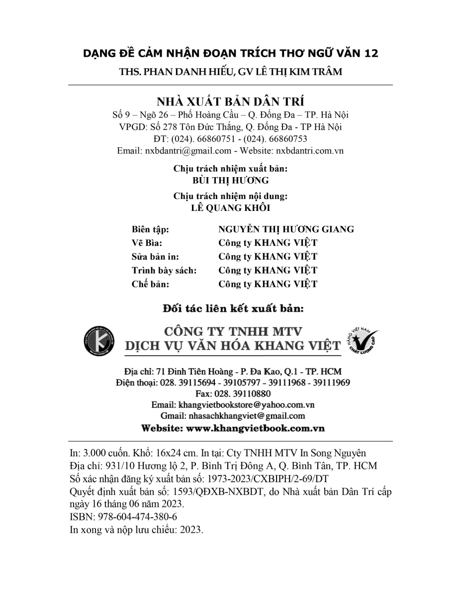Tất cả các tác phẩm Ngữ văn 12 nằm trong cấu trúc ra đề thi của Bộ GD & ĐT đề có trong cuốn sách này.