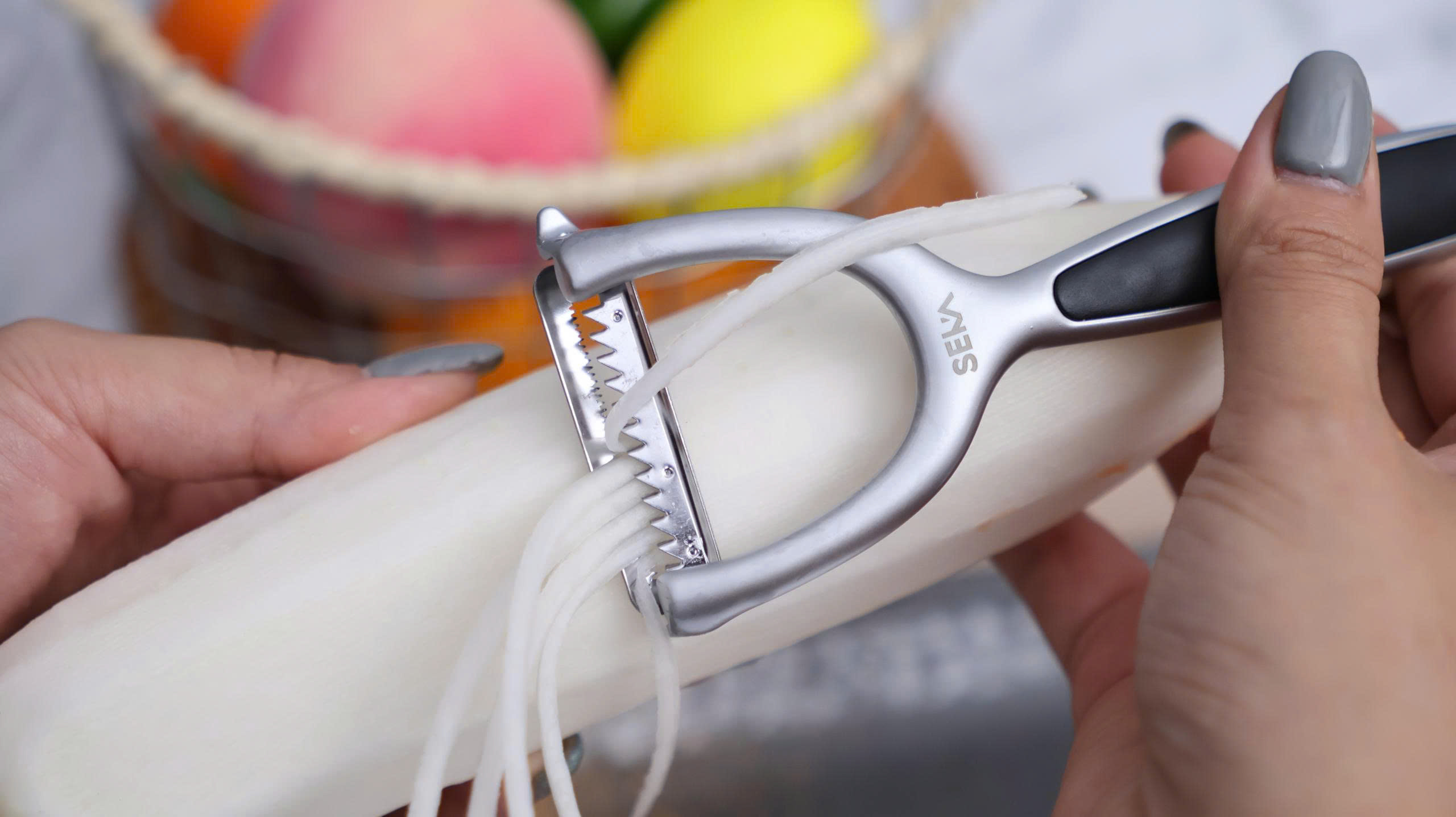 Nâng cao quá trình chuẩn bị lột da của bạn. Dụng cụ gọt vỏ nhiều lưỡi, hai trong một của chúng tôi cung cấp cả lưỡi thẳng và lưỡi Julienne mà bạn chỉ cần chọn