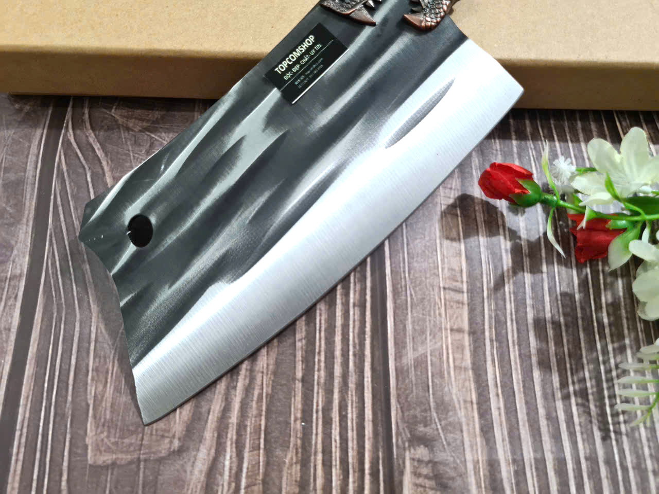 THÔNG TIN SẢN PHẨM ều dài TỔNG: 31cm Chiều dài lưỡi: 18.5cm Chiều rộng lưỡi: 8cm, Độ dày lưỡi: 2.7mm Trọng lượng: 0,35kg chất liệu lưỡi : 4Cr13MOV (thép 4 crom 13 molypden vanadi)
