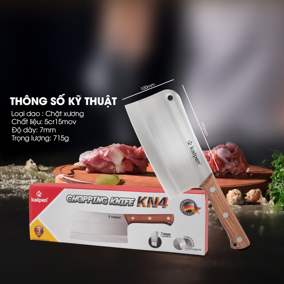 Lựa chọn lý tưởng cho đầu bếp chuyên nghiệp: Với lưỡi dao sắc bén, khả năng chịu lực tốt, dao chặt Kalpen KN4 đáp ứng nhu cầu chế biến thực phẩm trong nhà hàng, quán ăn chuyên nghiệp.